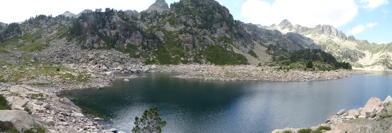 Belle journée pour parcourir le système lacustre de Caderolles , Gréziolles, de Campana au lac Arredoun & pour finir les lacs de la Hourquette. Vue splendide sur le système lacustre du Bastan , avec le lac supérieur du Bastan .