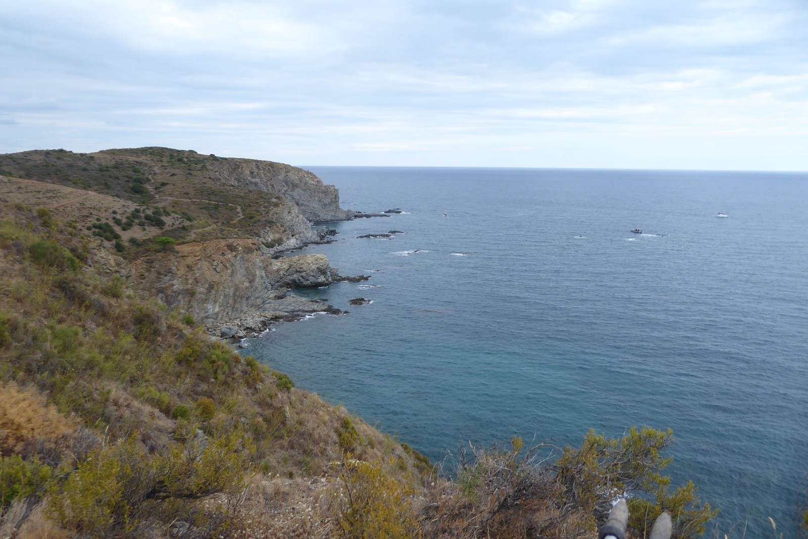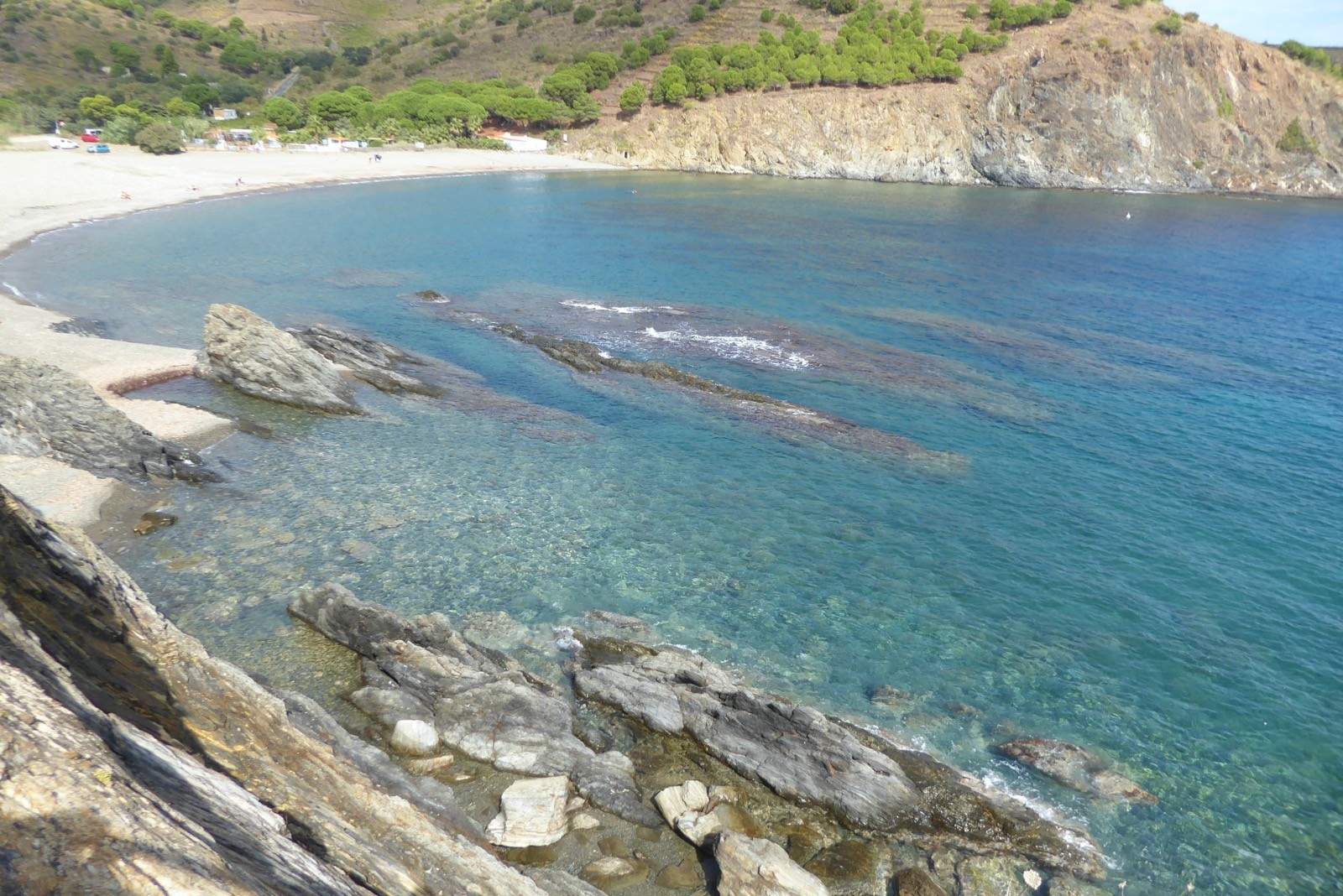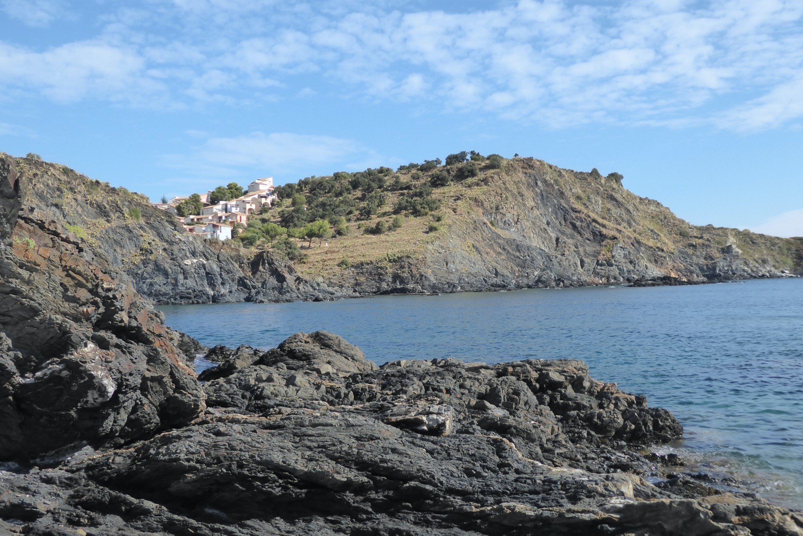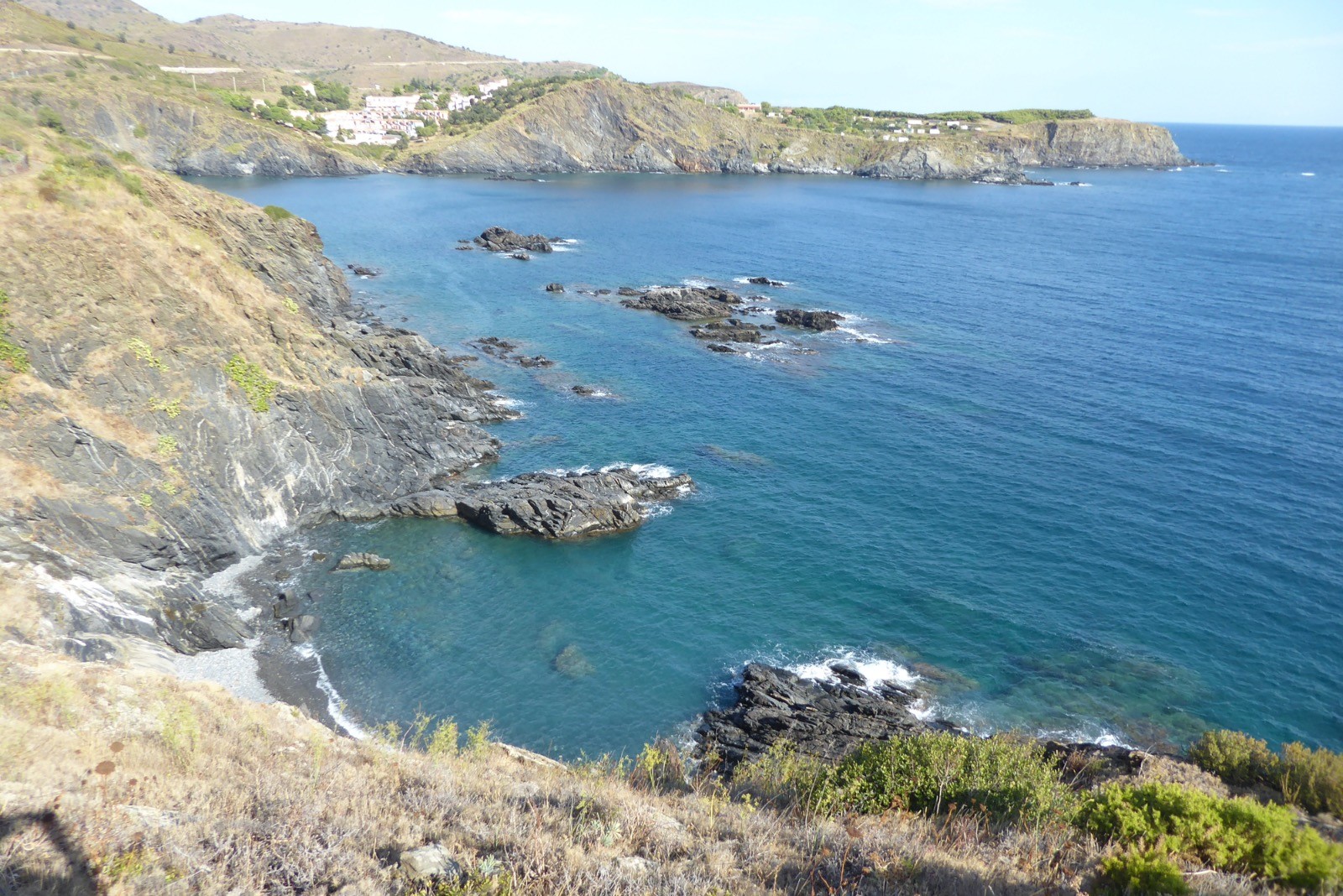 Premier jour de notre visite , nous allons suivre le sentier côtier de Cerbère à Banyuls....Dans la mythologie grecque, Cerbère est le chien polycéphale gardant l'entrée des Enfers. Cerbère dispose de la station balnéaire la plus au sud de la France. Sur le plan historique et culturel, la commune est dans le Roussillon, une ancienne province du royaume de France, qui a existé de 1659 jusqu'en 1790 et qui recouvrait les trois vigueries du Roussillon, du Conflent et de Cerdagne.Le sentier est superbe, nous faisant passer par de belles criques et plages, certes petites, mais magnifiques par la qualité de l'eau car c'est une réserve marine qui protège de belle espèces .C'est le première Réserve Naturelle Marine française créée en 1974. Elle s’étend sur 6,5 km et couvre 650 ha de mer entre Banyuls-sur-Mer et Cerbère (communes étant à l’initiative de sa création), juste au nord de la frontière espagnole.