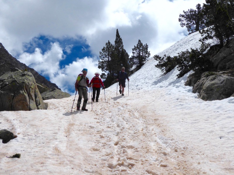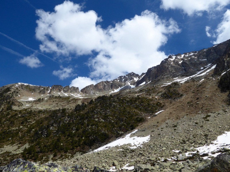Magnifique journée pour aller jeter un coup d'oeil sur deux sommets qui finissent la crête qui descend du Pic de Cestrède, le Pic Inférieur de Culaus et le Pic de Culaus. Dans la montée au refuge Russel, magnifique vue sur la vallée du Lutour: Lacs d'Estibe Aute, Pic D'Estibe Aute, Pic de la Sède , du Labas, et entre les deux la crête du Monserrat . Egalement visible depuis le refuge la Pique Longue du Vignemale .Puis, en poursuivant après le refuge, voici l'Ardiden sur notre gauche et sa crête qui descend vers le Pic Chanchou et le col de Culaus. Une course tonique cependant . Nous avons trouvé la neige en ce milieu du mois de mai .