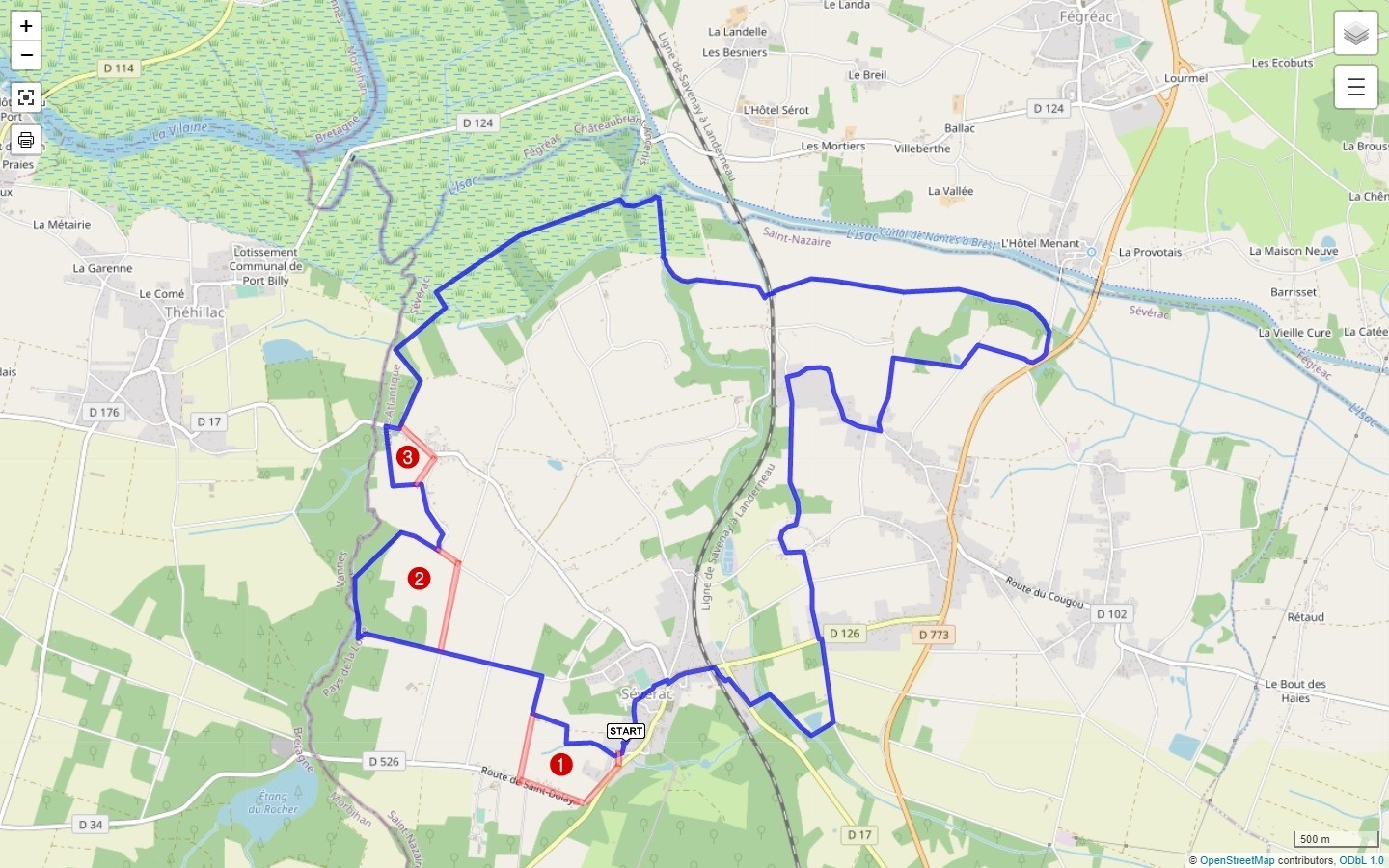 Trace GPX de la randonnée : RandoBreizh & la fiche descriptive : Mairie de Severac Description :