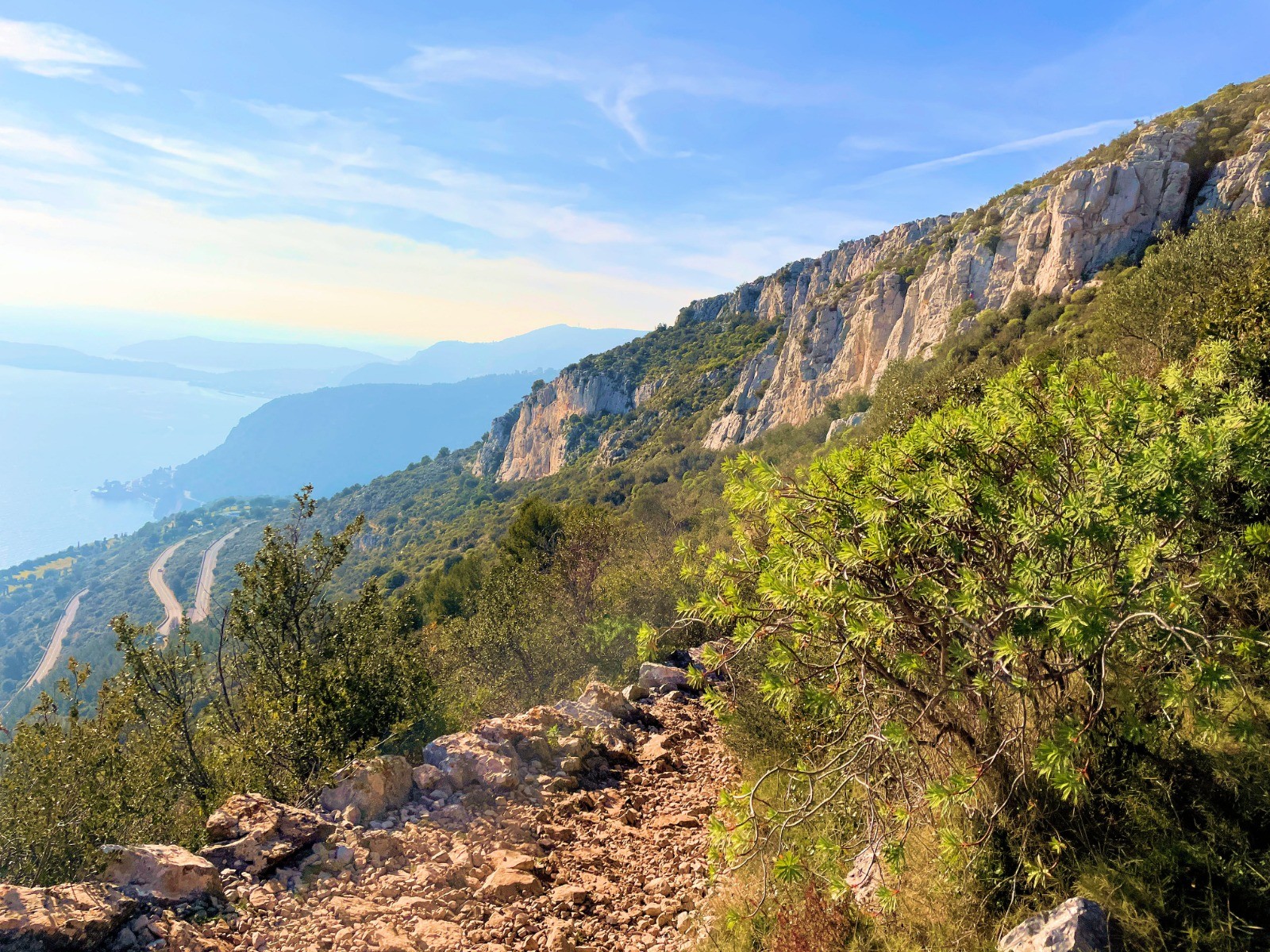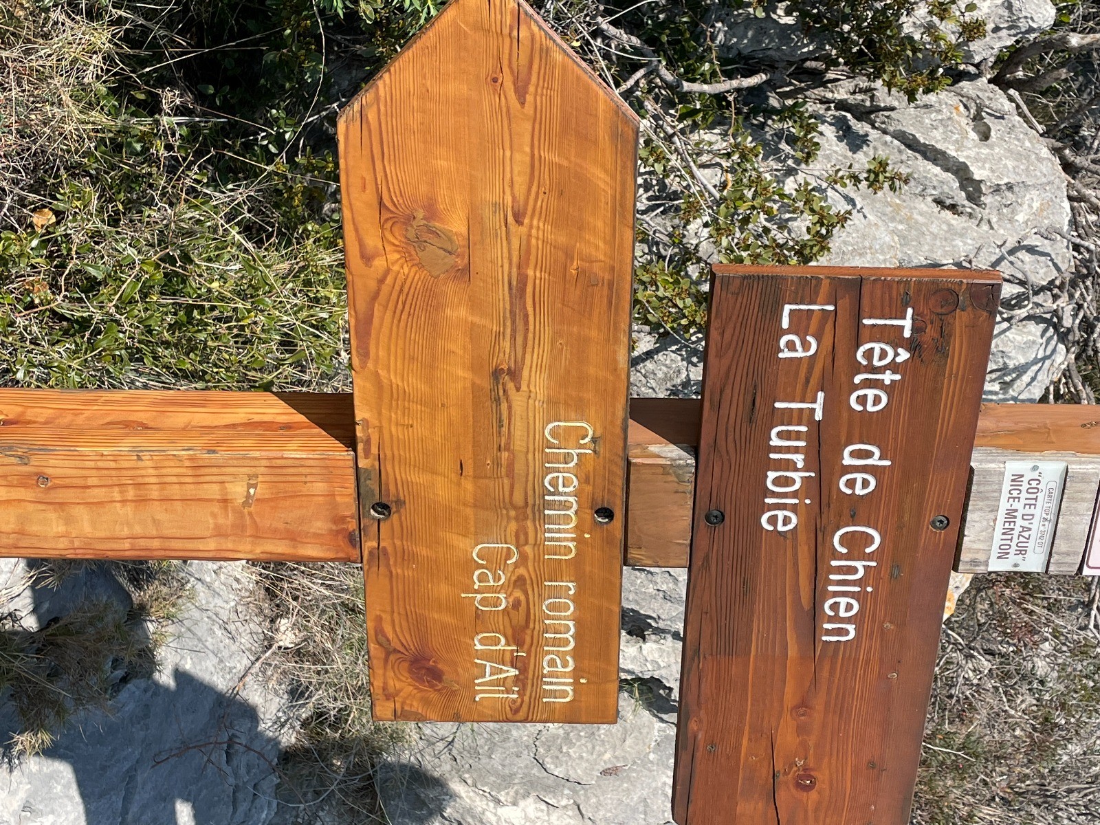 Le but était de faire le tour de la Tête de Chien au départ de Cap d'Ail : le départ est bien fléché et la montée très progressive jusqu'à la borne 606 qui indique que le chemin est ensuite interdit, situation qui dure depuis très longtemps.... ???? Nous avons alors pris le chemin qui partait sur la droite pour longer la Tête de Chien et redescendre ensuite par un chemin bien tracé constitué de marches en pierres.... Les vues sont magnifiques au demeurant.... à ne pas faire en plein été, pas d'ombre....
