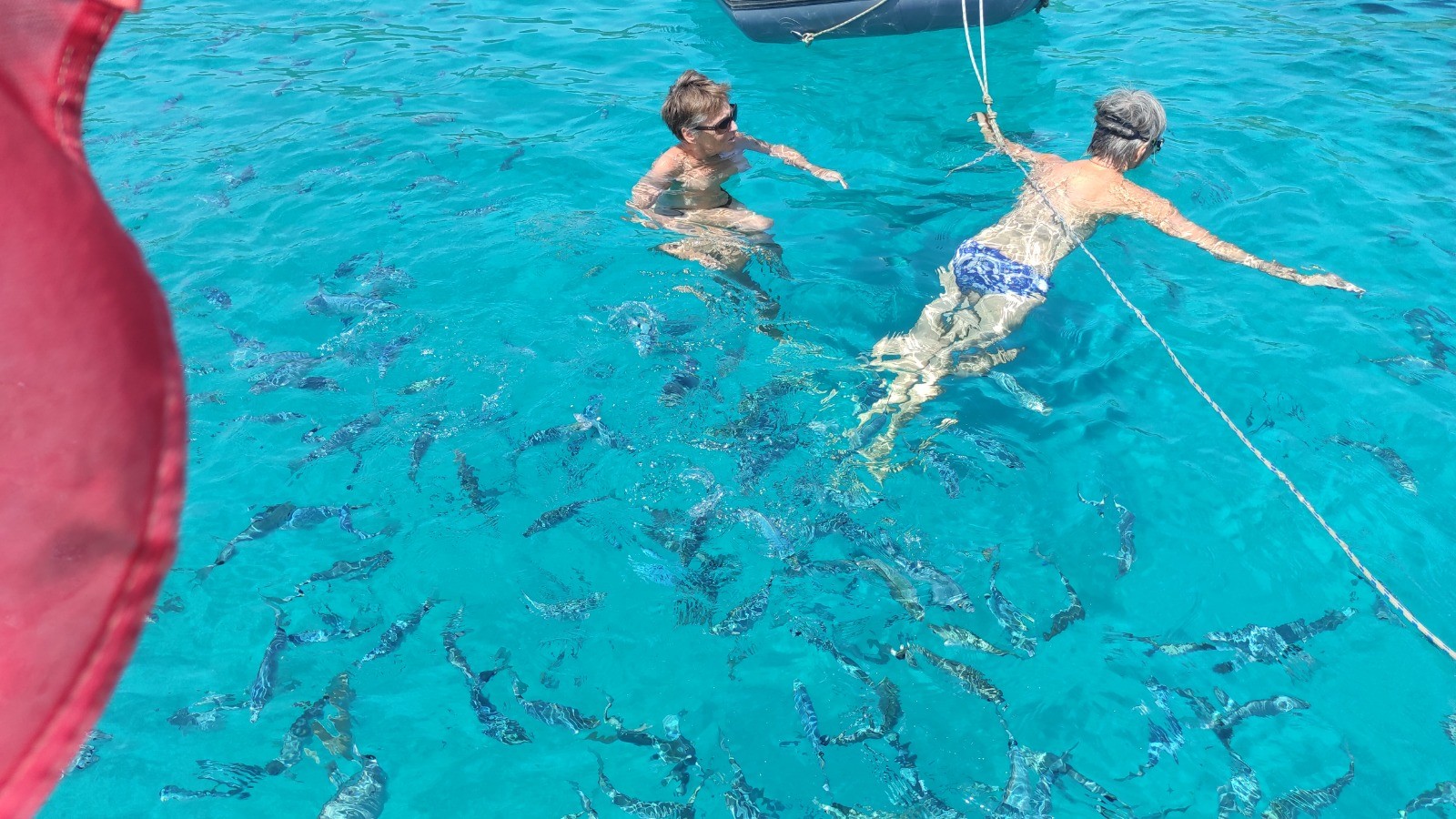 Cela se précise après notre thon bi-quotidien, et aussitôt le moteur de l'annexe monté à poste, l'annexe hissée, ficelée à l'avant, même pas dégonflée nous décollons (c'est une image, nous sommes toujours sur un bateau).