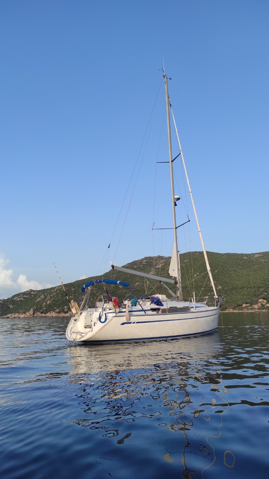 Nous repartons pour le mouillage de nuit, deux criques plus loin. La fuite est susceptible d'être réparé. A terre tout est grillagé pour parquer les chèvres,.