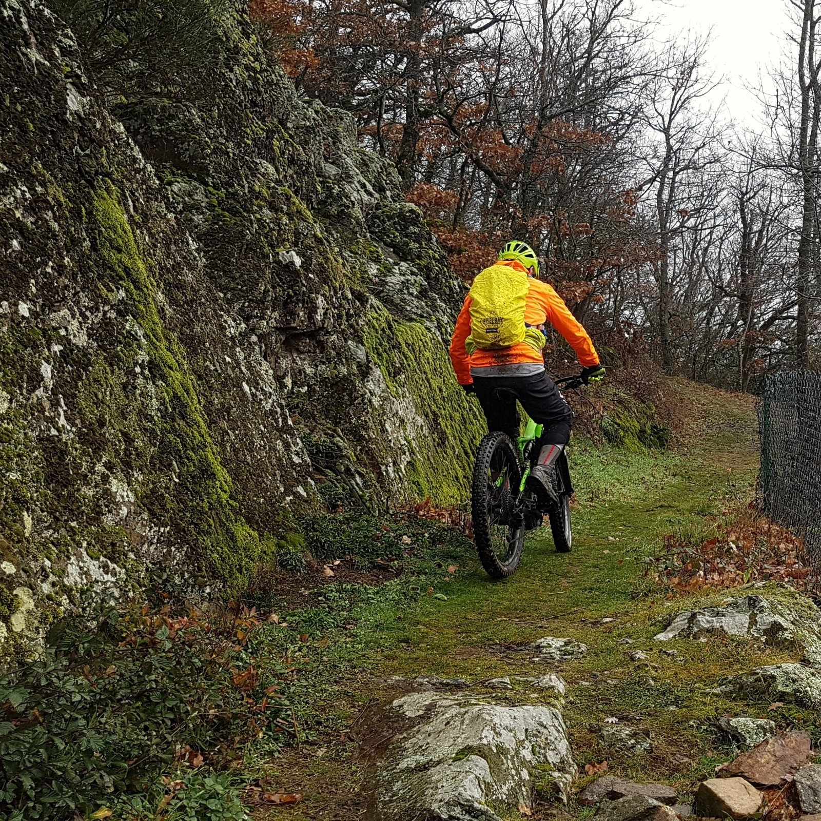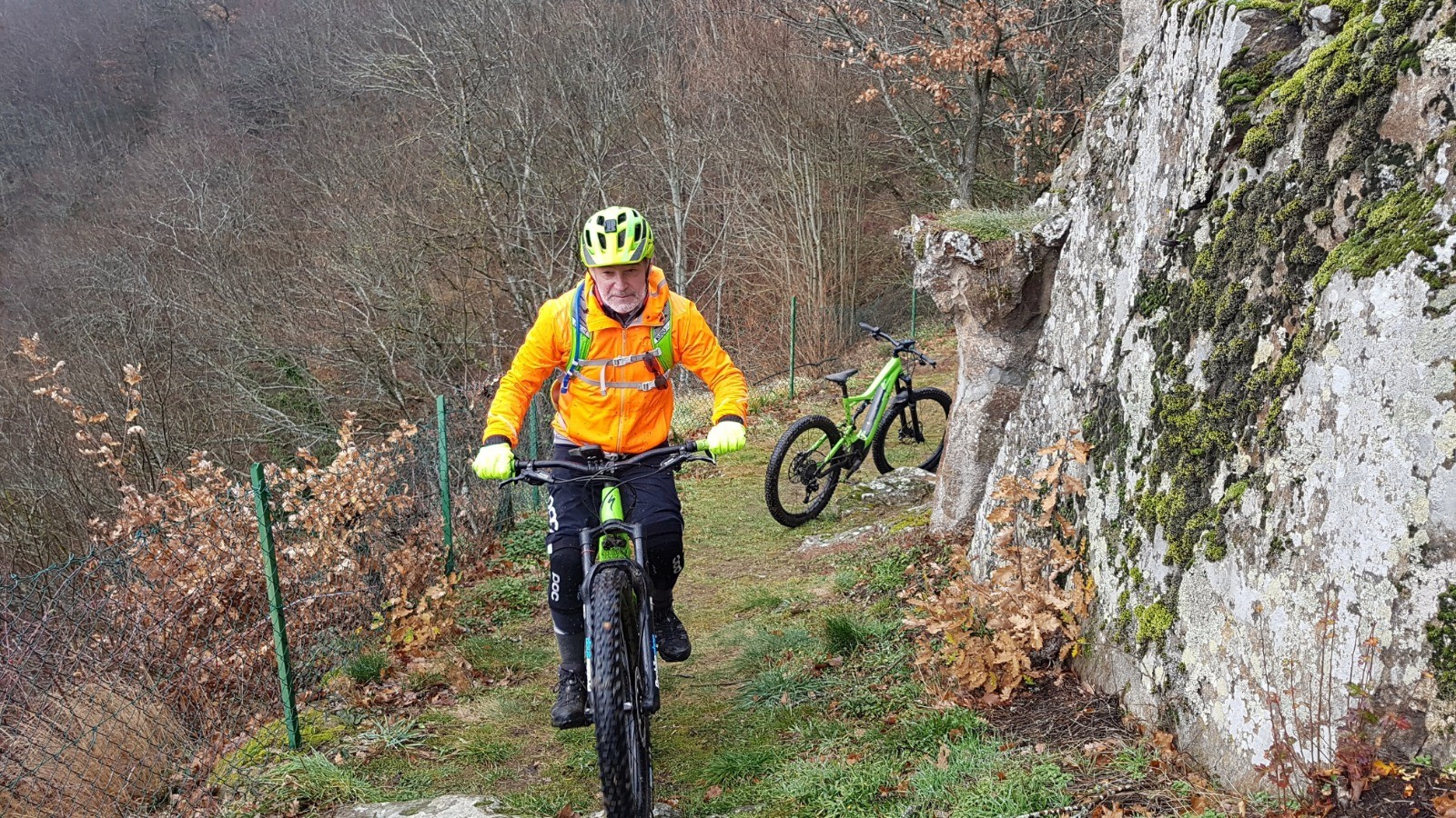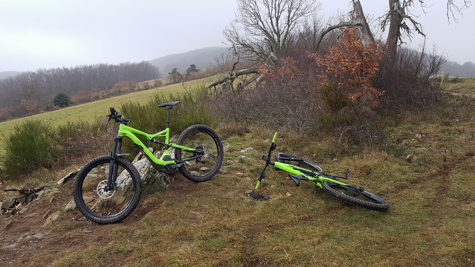 Pluie du matin n'arrête pas le pélerin ni le vététiste ....Viron sur les crêtes du Chatelard écourtée .....Bien zippant, note technique 6 sur 10; note artistique 8/10 ( pour le demi-flip et le saut de biche) ....L'hiver est bien là ....