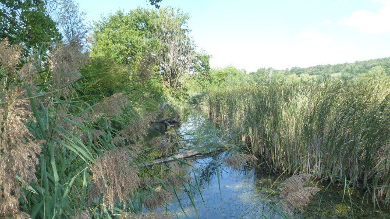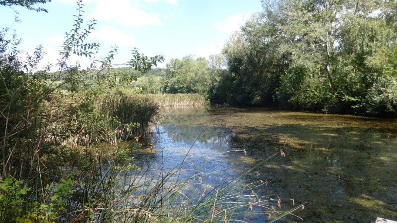Cheminement par le GR 965, la combe de Pend Loup, la combe de la Gouderie en sous-bois par une montée plus ou moins caillouteuse, poursuite vers l'étang de Jarrie essentiellement à découvert.