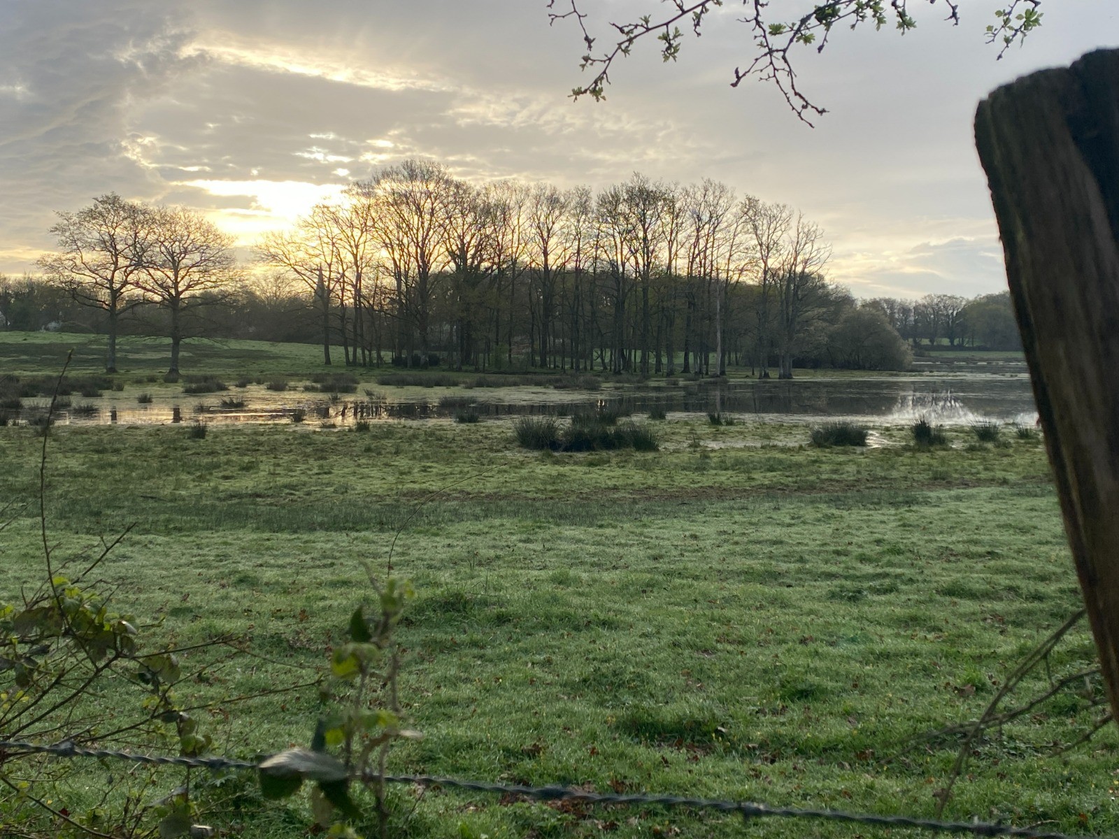 8H00 Le soleil se lève lentement à l’horizon, baignant les marais d’une lumière dorée.