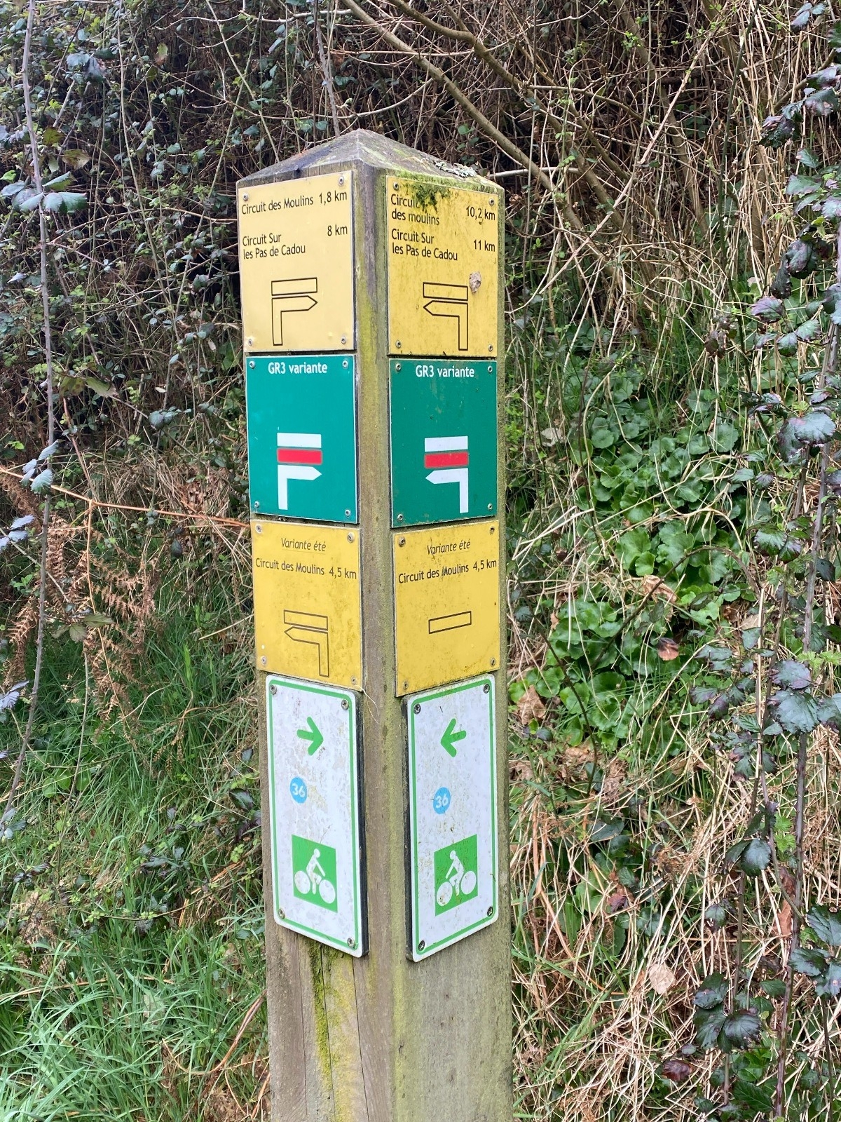 Ce circuit emprunte des circuits connus ( effectués lors de précédentes randonnées ) "Sur les pas de Cadou", "Les moulins de la Fortune", "Circuit des moulins" ... voire le GR3 ou GRP Tour de Brière.