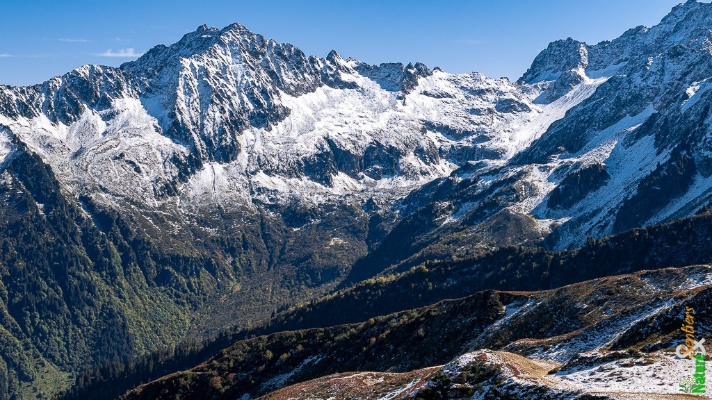 Plagnes dans le superbe panorama de nombreux sommets emblématiques de