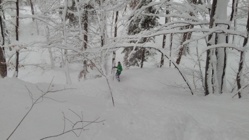 Avec Gaspard et Sylvie, en monter il faut tracer. De la peuf jusqu'à la taille en foret pour la descente.