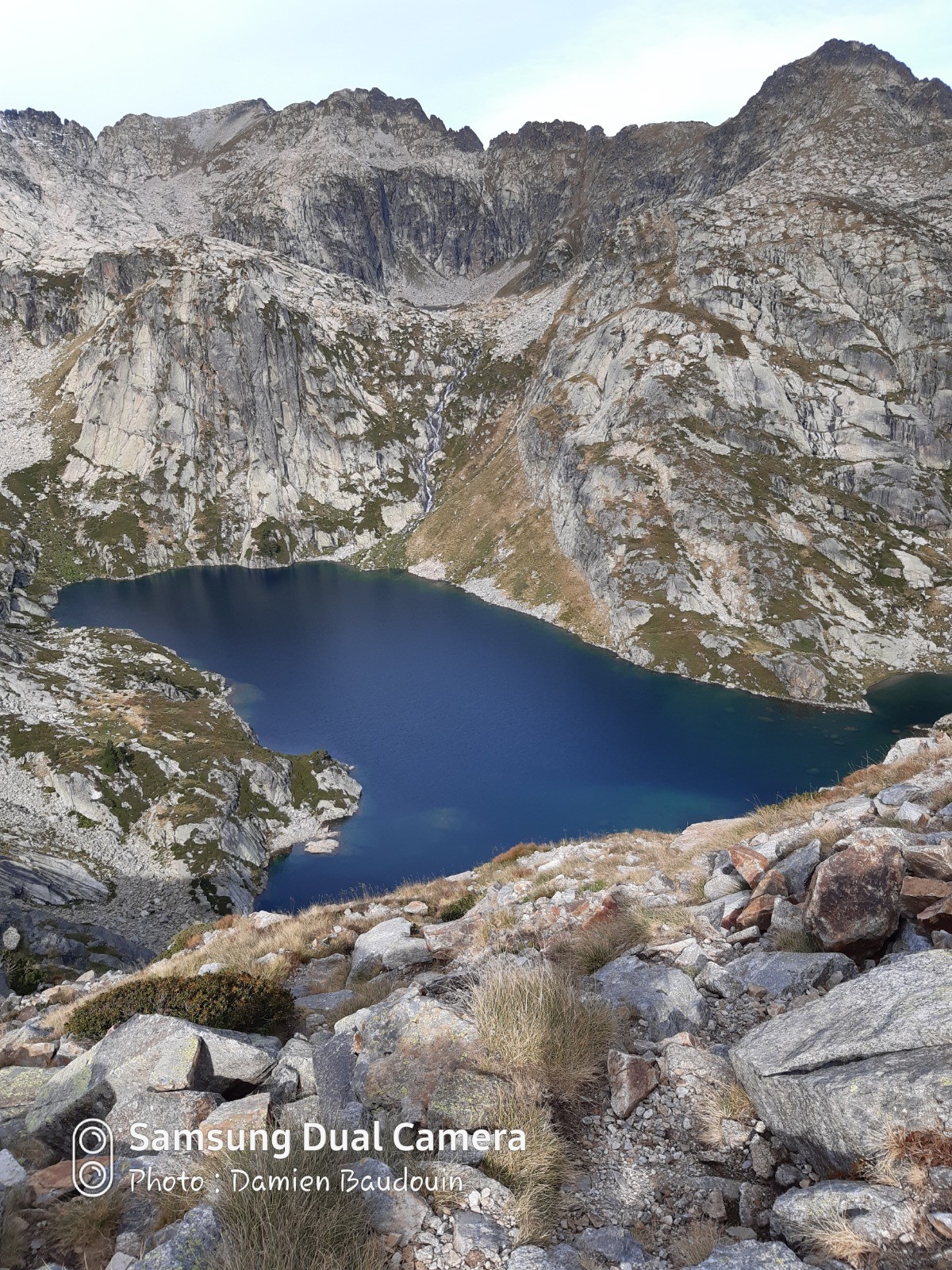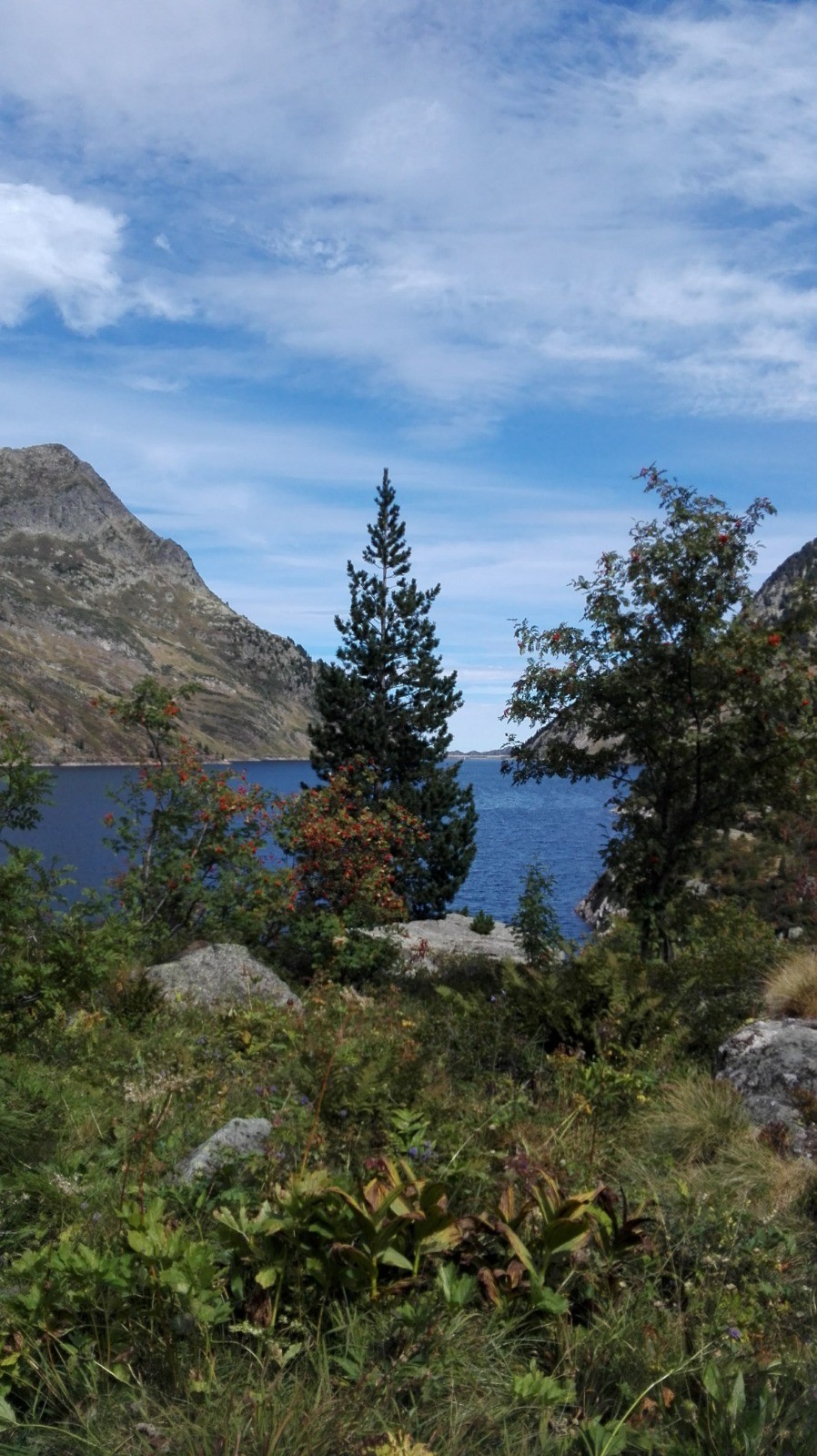 Après une nuit au refuge d'en Beys, nous sommes montés vers la Couillade d'en Beys où l'on côtoie quelques restes de neige tombée ces derniers jours, avant de redescendre vers le lac de barrage de Naguille et Les Forges d'Orlu. La descente est plutôt accentuée hormis le long du lac de Naguille.