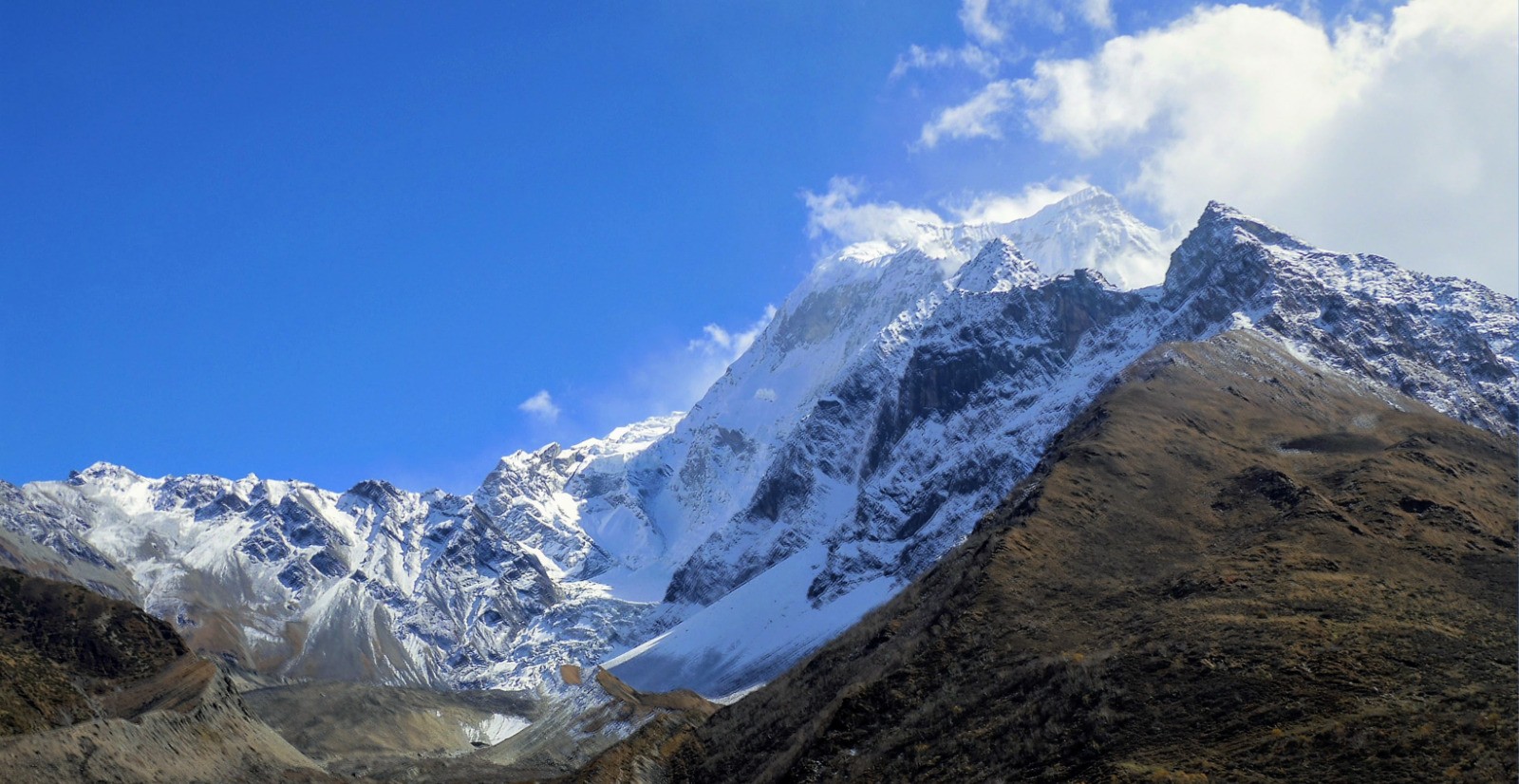 Il fait très beau aujourd'hui et l'on peut voir les montagnes et les sommets du coin, Ganesh Himal, Himal Chauli, Nakya peak. Seul le Manaslu reste dans les nuages
