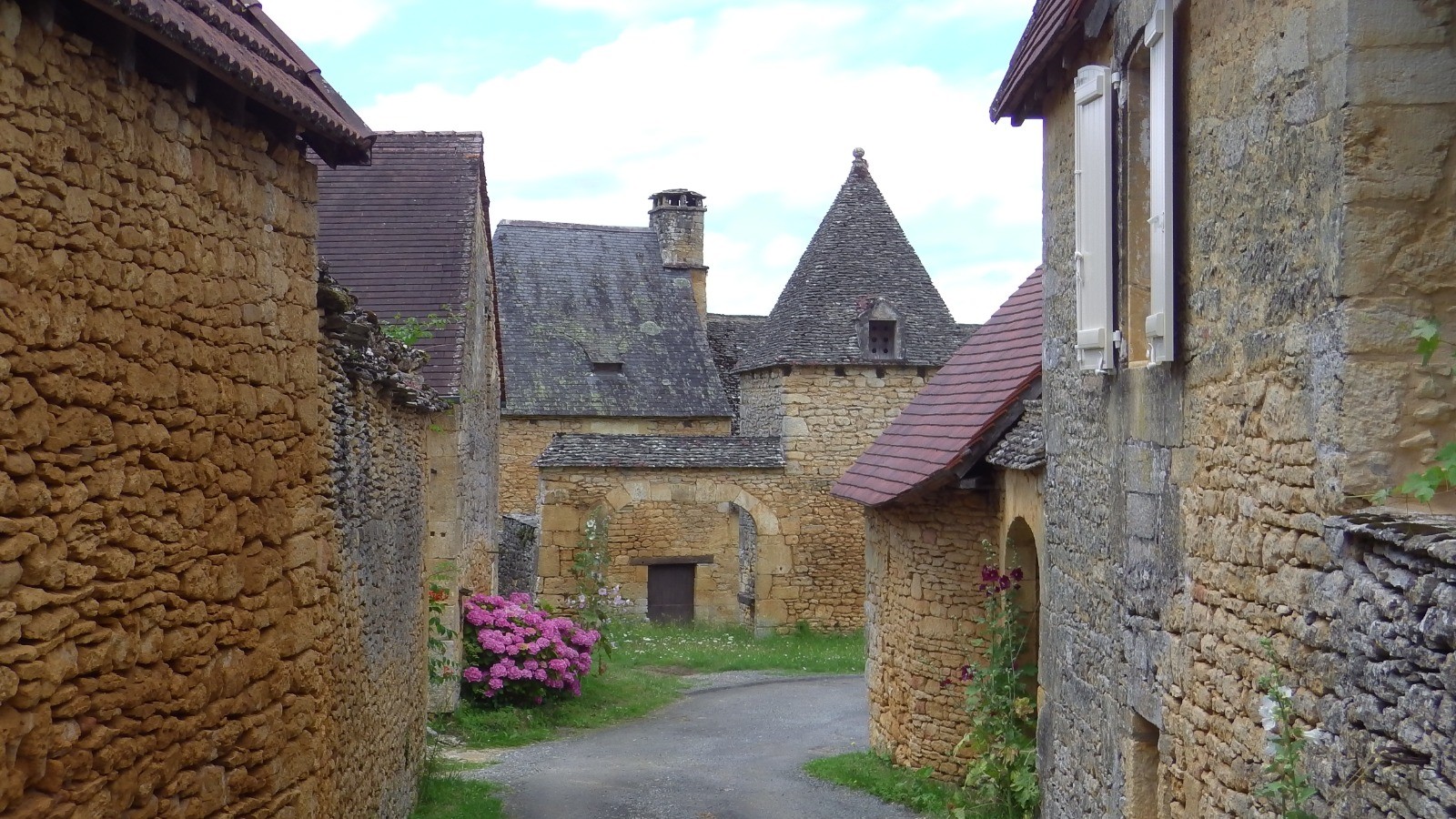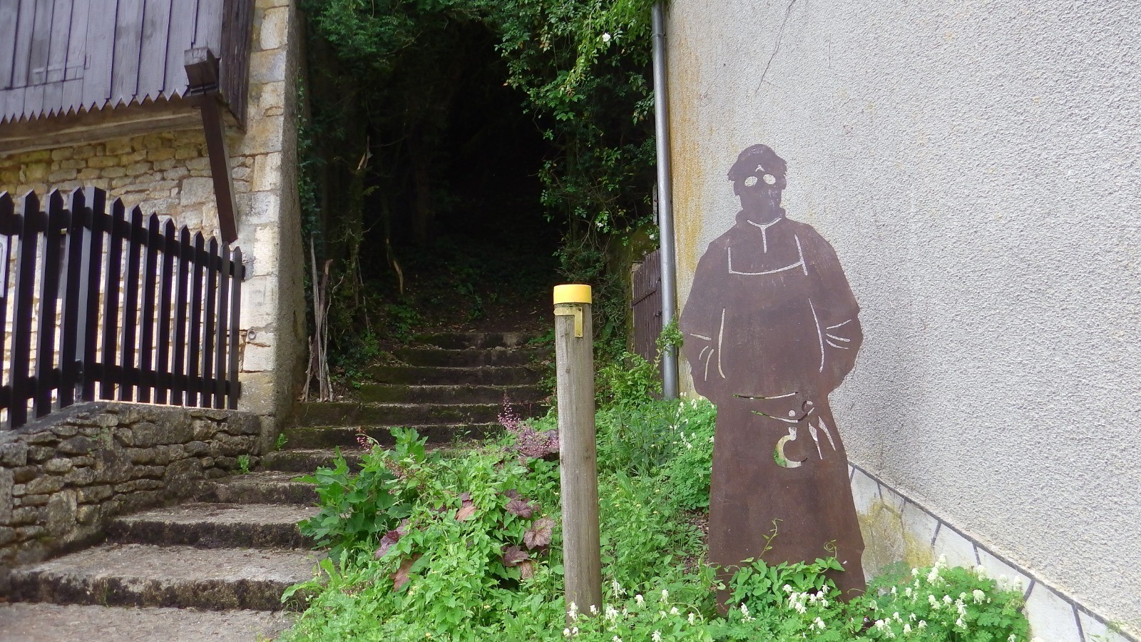 C'est la Dordogne profonde. A l'entrée du village, un moine vous incite à prendre un sentier qui monte sur le plateau, la visite se fera au retour ...