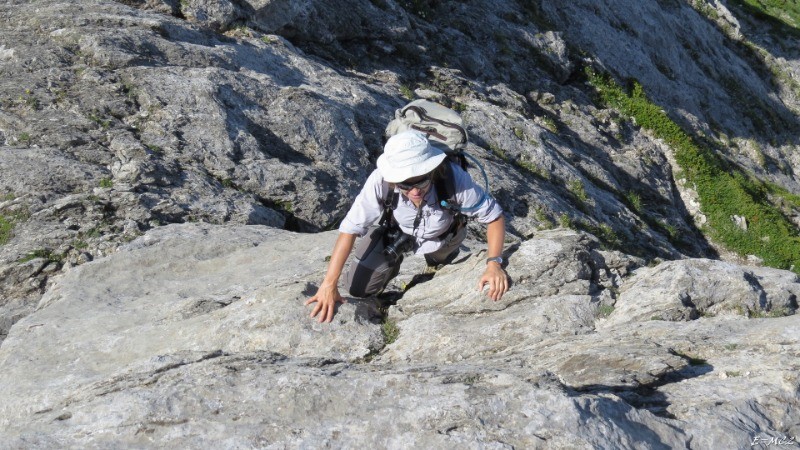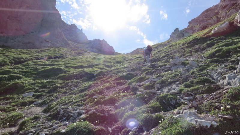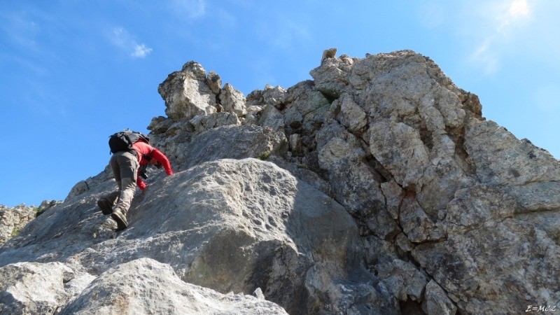 A l'approche de la crête, contourner par la gauche la base du Pic Arrouy pour remonter un couloir raide où il est nécessaire de mettre plus ou moins les mains. La fin de l'ascension du Pic du Midi d'Arrens se fait par l'arête sud, en bon calcaire. Quelques pas de d'escalade de niveau II. Il est plus facile de monter au Pic Arrouy sur la droite en haut du couloir.