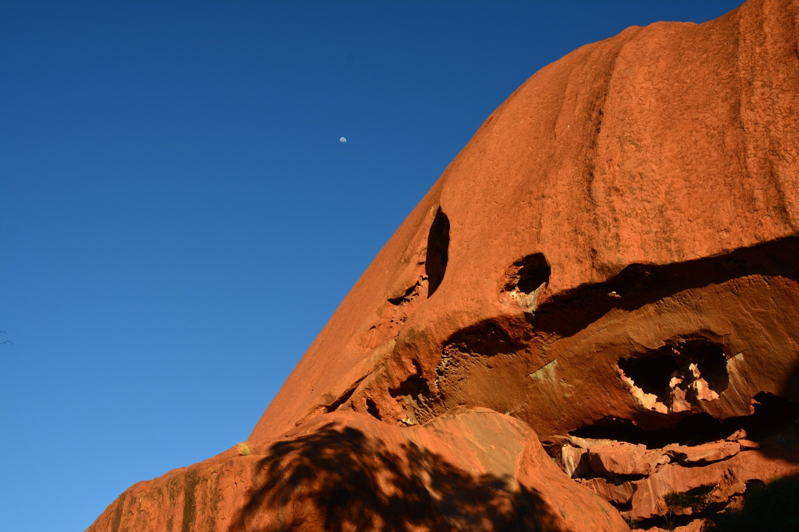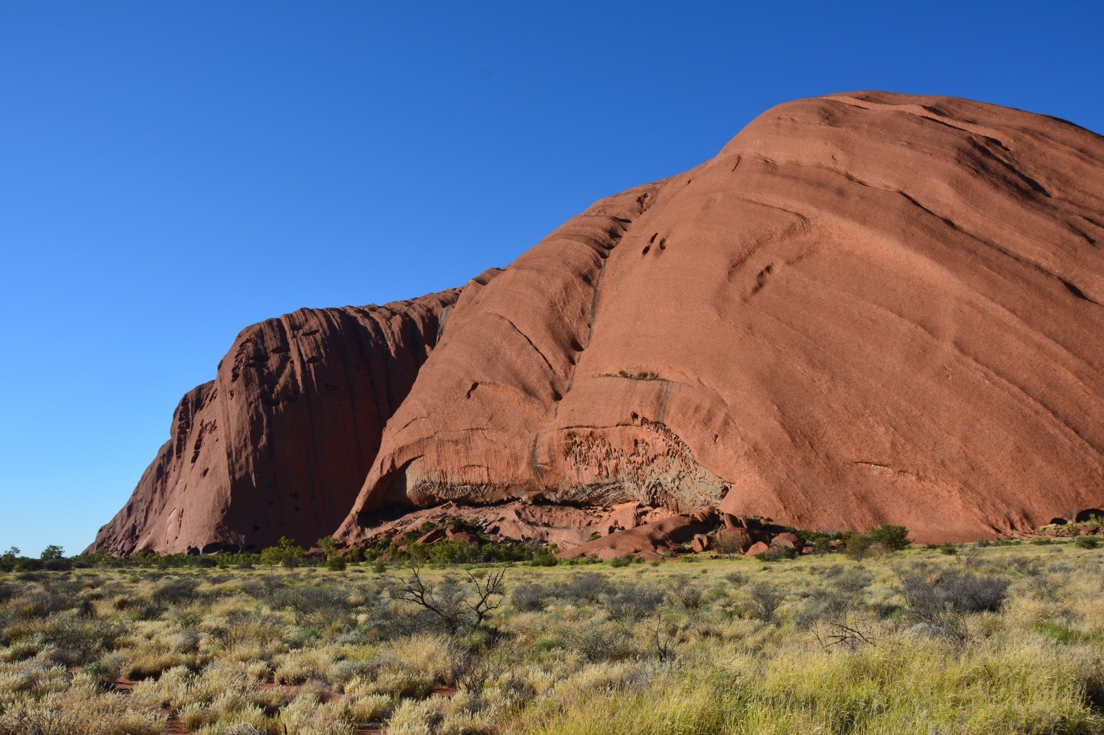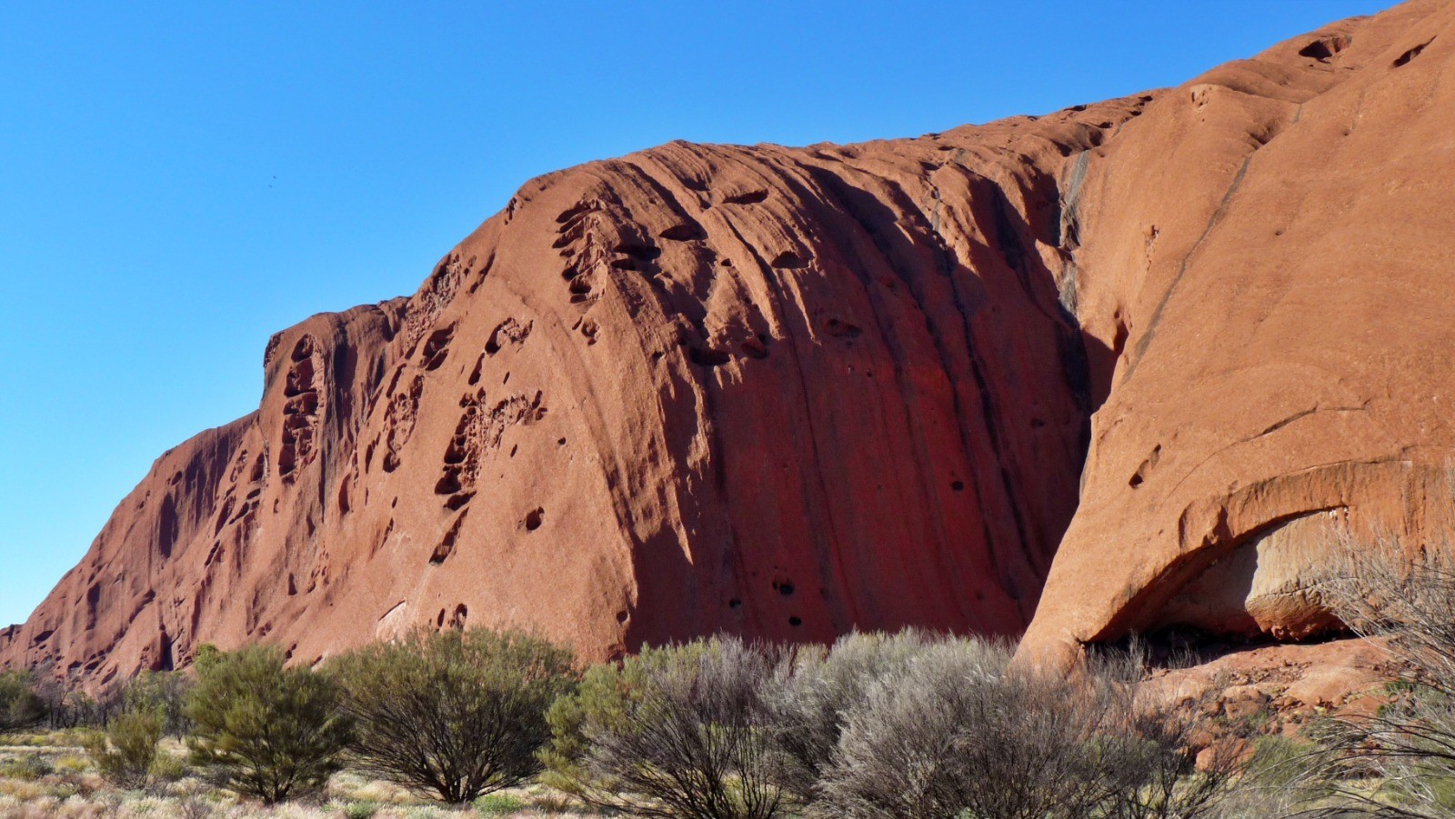 Le tour d'Uluru. Ne pas tenir compte des élévations d'altitude (erreur GPS) : c'est tout plat autour d'Uluru. Il est interdit de prendre des photos à certains endroits sacrés.