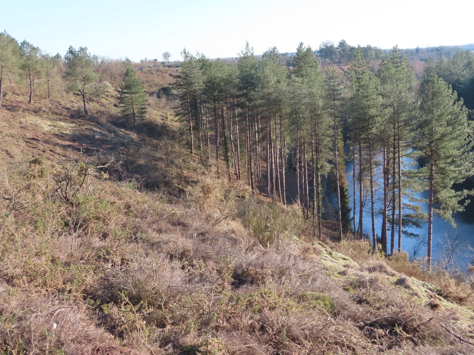 Se diriger vers la passerelle au nord du plan d'eau, suivre les rives du lac vers la Filais et continuer sud dans le bois de la Roche Trébulente, puis ouest vers le Bois de Putenoë. En sortant du bois direction sud-ouest vers le Bois de Butavent et son étang puis nord vers le GR37. Suivre le balisage allant vers Ozanne puis dans le vallon du ruisseau du Boutavent. Remonter nord vers l'étang de la Chambre au Loup, puis au barrage prendre le chemin escarpé sur la droite dans la falaise pour rejoindre le Landier des Noës. Boucle nord-ouest par les landiers du Rocher Plat et des Bruyères. Fin de parcours sur le GR37.