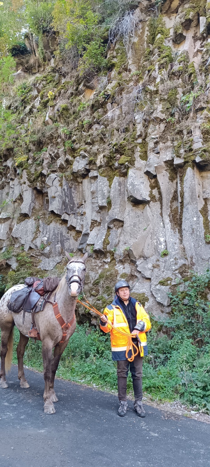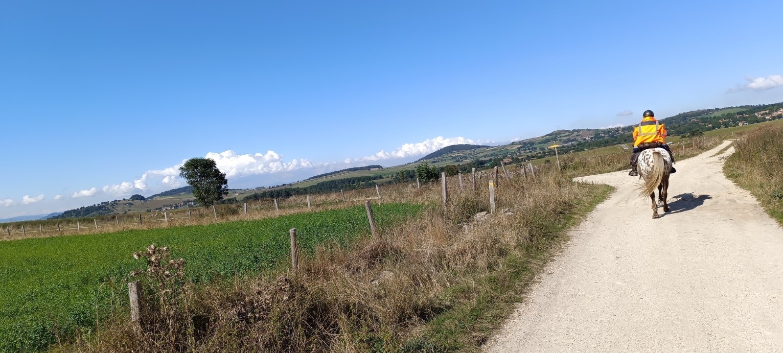Au départ de l'hôtel Beauséjour. Une très bonne table et chevaux au paddock sous l'hôtel. Étape sans difficulté, bon chemin malgré un peu de route.