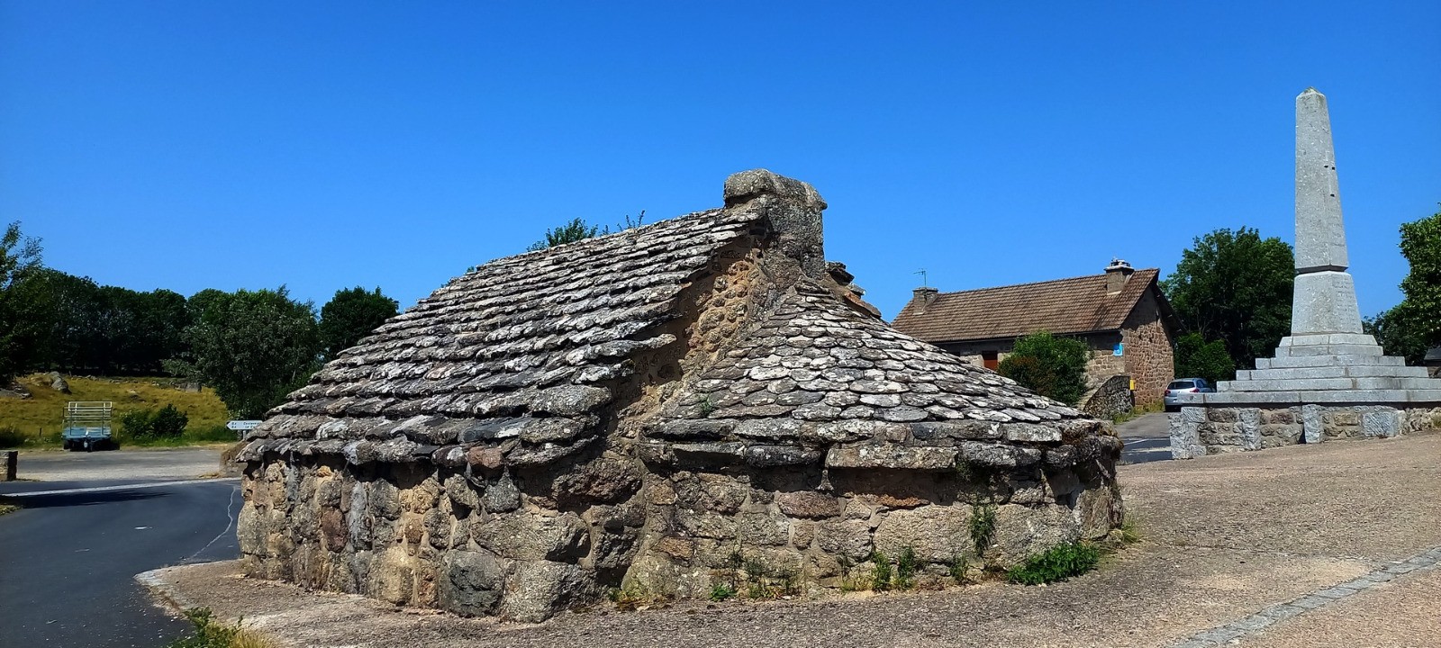 Cinquième journée du circuit, afin de gagner une étape, départ du pont de Gournier direction Termes, près de 30 km sous une chaleur accablante et sans point d'eau, nous avons coupé le circuit et passé au hameau d'Aubars ou il n'y avait pas de fontaine d'eau potable (eau coupée par la mairie afin d'économiser - MERCI) mais un habitant nous a généreusement donné à boire et rempli nos bouteilles.