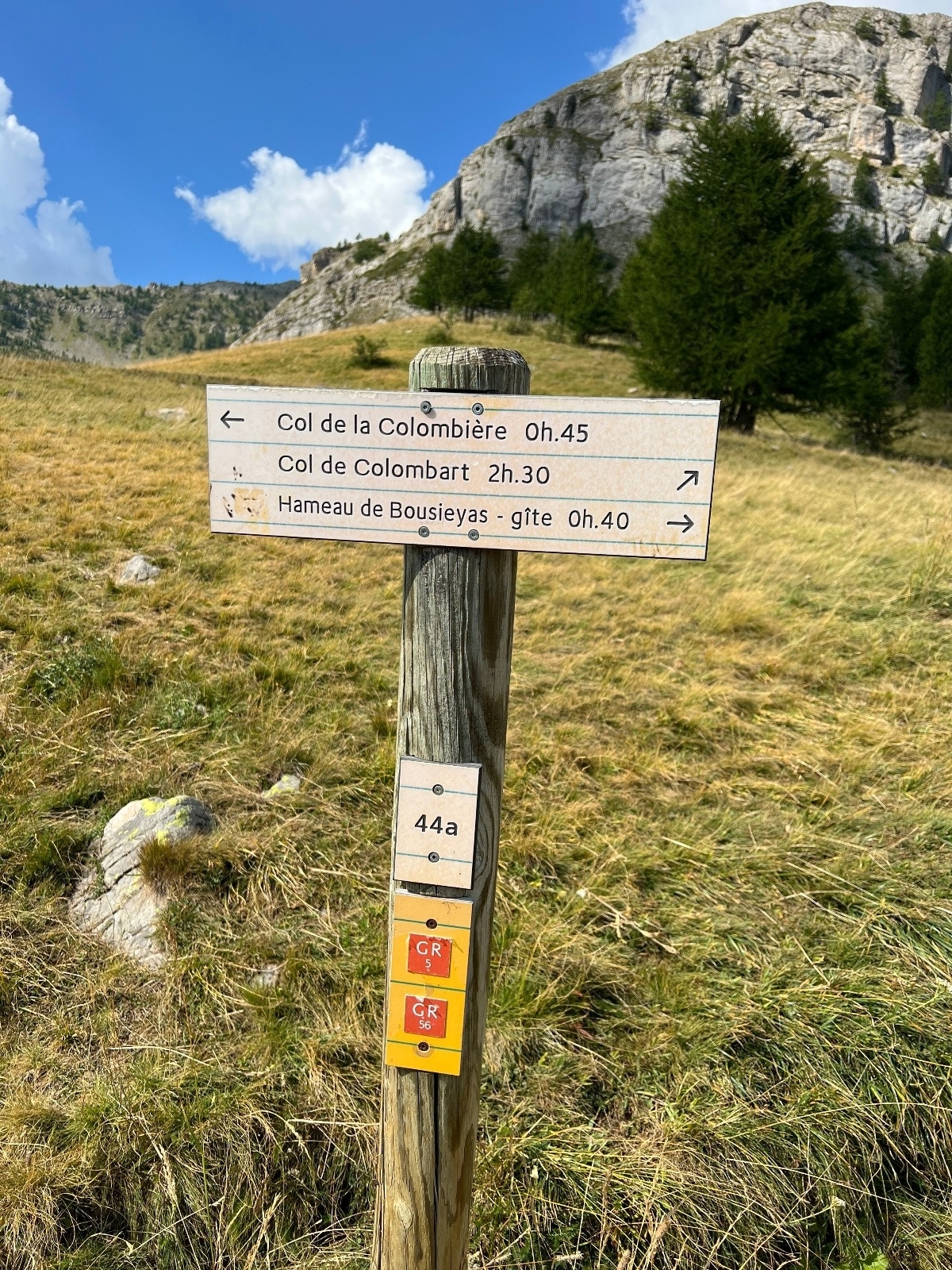 Balise 44: croisement du GR5 et GR56, prendre direction col de la Colombière, balise 47.