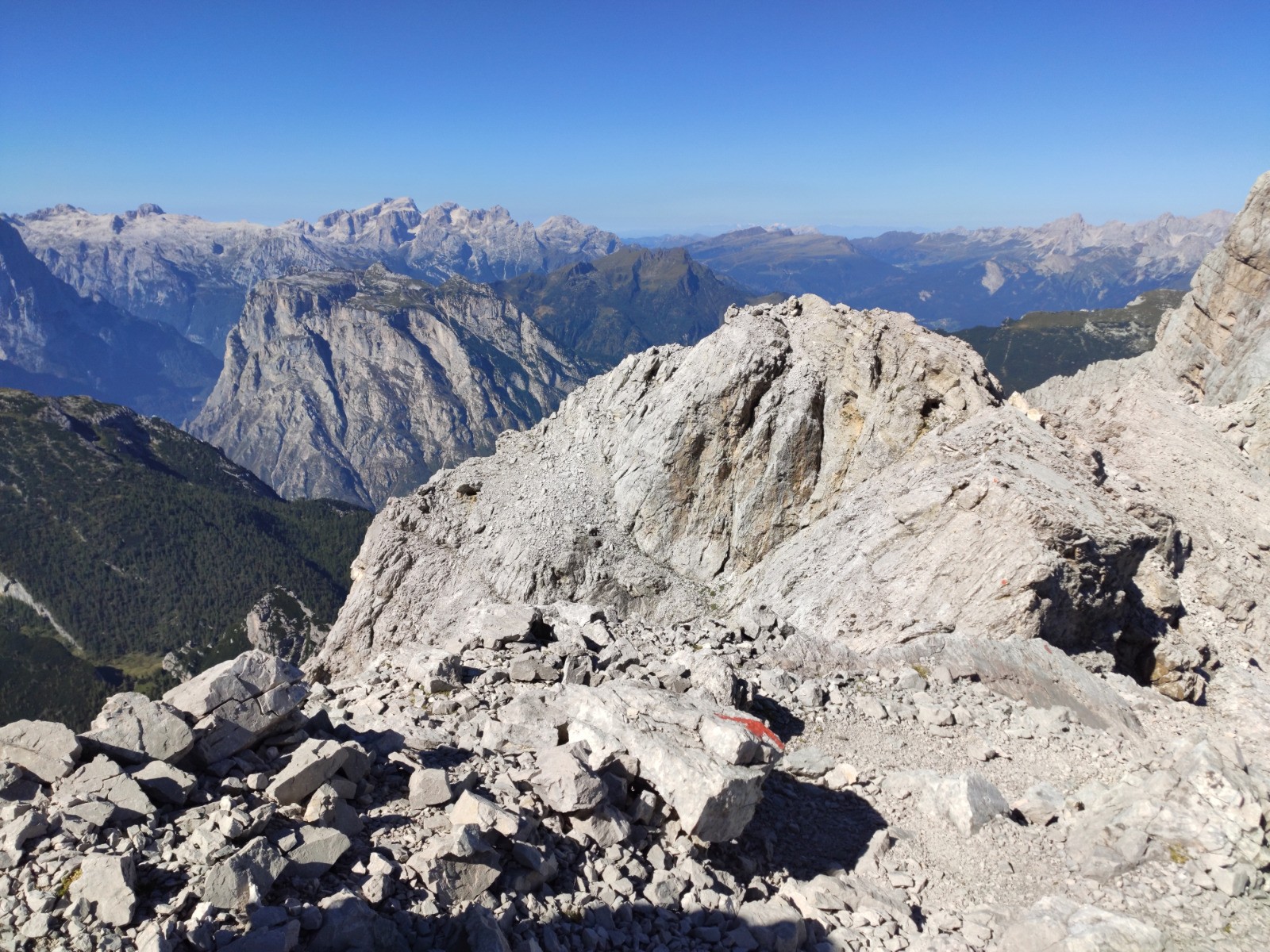 Le topo de ce long parcours depuis le Rifugio Bruto Carestiato est disponible sur internet. Option Moiazza Sud (2878 m).