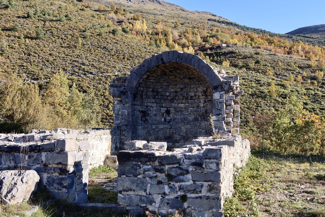 A la balise 220 prendre la direction du col de St Pons pour se retrouver à la balise 218 et sa chapelle, avec une belle vue sur le Mercantour . Prendre la direction du Brec d'Ilonse et arriver à la balise 217 de la baisse du Brec, quitter le sentier balisé.