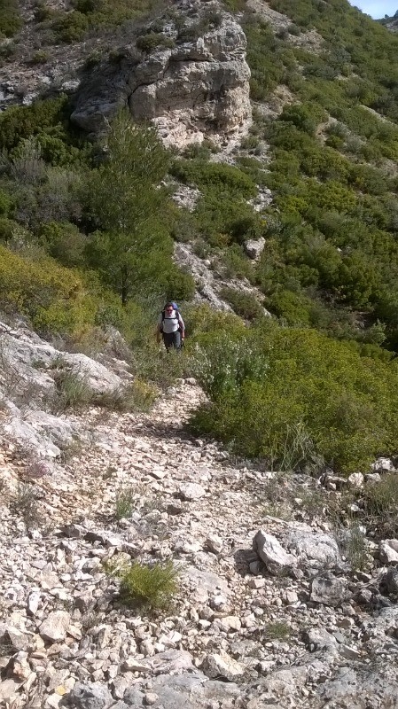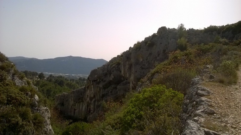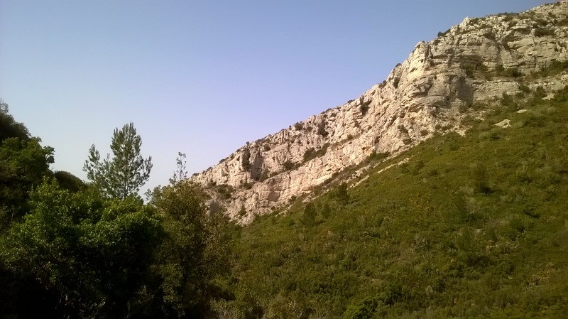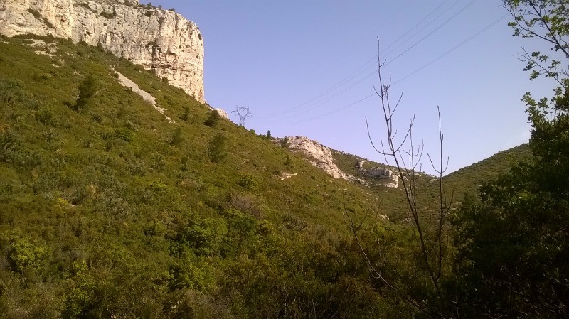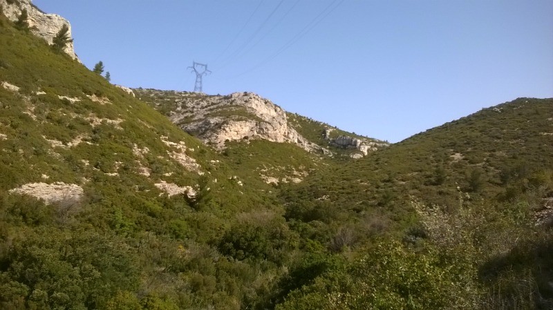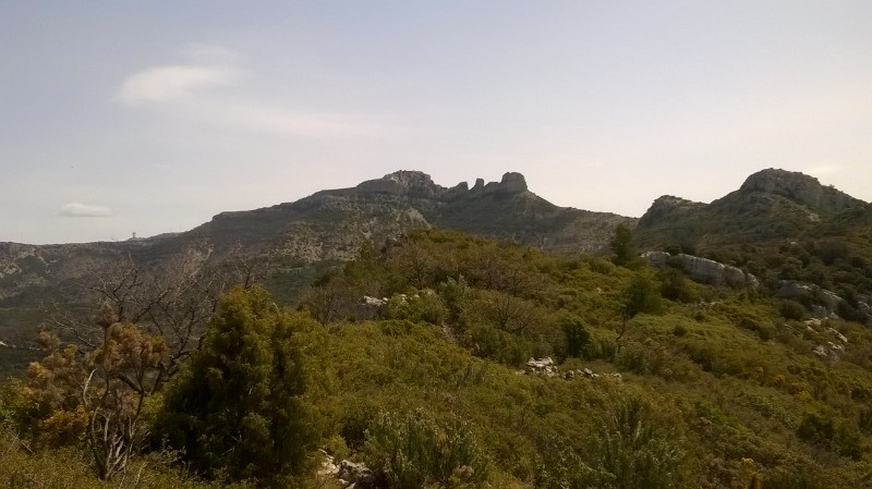 Départ du parking du prieuré à St Jean de Gargier. Nous avons pris un sécateur car cela peut piquer (Végétation très dense, chênes kermès, etc…) Prendre le chemin de St Clair goudronné jusqu’au rond-point ensuite tourner à gauche, faire 100 m environ et prendre le sentier qui permettra de contourner le château de St Jean. Passer sous une arche en pierre et suivre le vallon des Seignors jusqu’à un croisement (au-dessus ligne électrique). Le chemin part à gauche, il descend et il est marqué de points rouges. Les suivre d’un bout à l’autre, pour monter jusqu’à la crête, vu de derrière, le vallon est magnifique, les Kermès piquent un peu par moment mais qu’elle vue ! Arrivé au sommet, vu à 360 ° le Garlaban, Pic de Bertagne, de derrière, les dents de la Rocheforcade, etc… continuer sur la crête à droite, jusqu’au sommet, passer sous le pylône, et descendre par la piste vers le sud. Au panneau « Privé » prendre le petit sentier à droite, et suivre à nouveau des points rouges, le sentier passe en crête jusqu’à la piste. Descendre jusqu’à rejoindre le Petit Tuny ensuite à la citerne, prendre le petit sentier du vallon de St Clair qui ramène jusqu’à St Jean de Gargier.