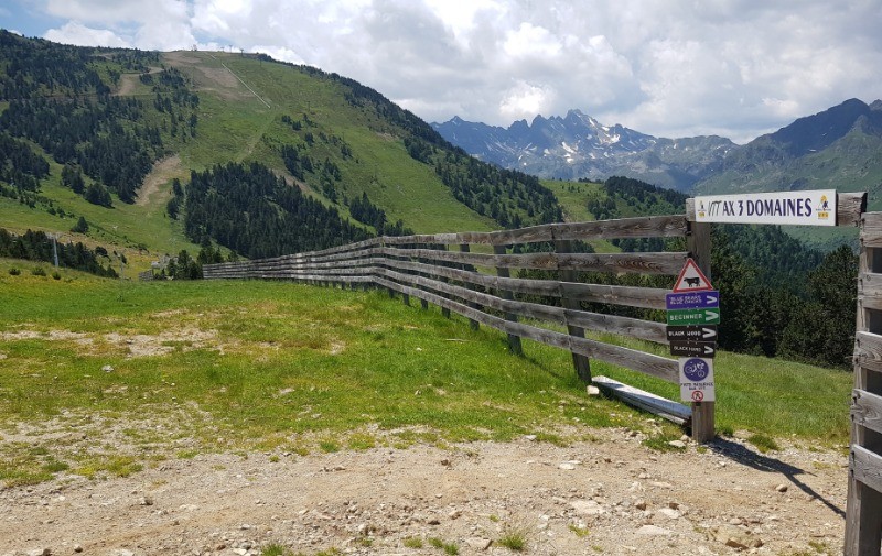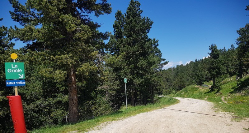 Balade facile au départ du sommet du télésiège du Lièvre Blanc à Ax Domaines (en juillet-août): Allez tout droit en suivant la palissade, continuez dans l'herbe jusqu'au panneau "la Griole retour station" puis suivez le chemin balisé par les panneaux de piste verte. Au panneau "1" prenez à droite pour passer sous le télésiège et rejoindre le bas de la station