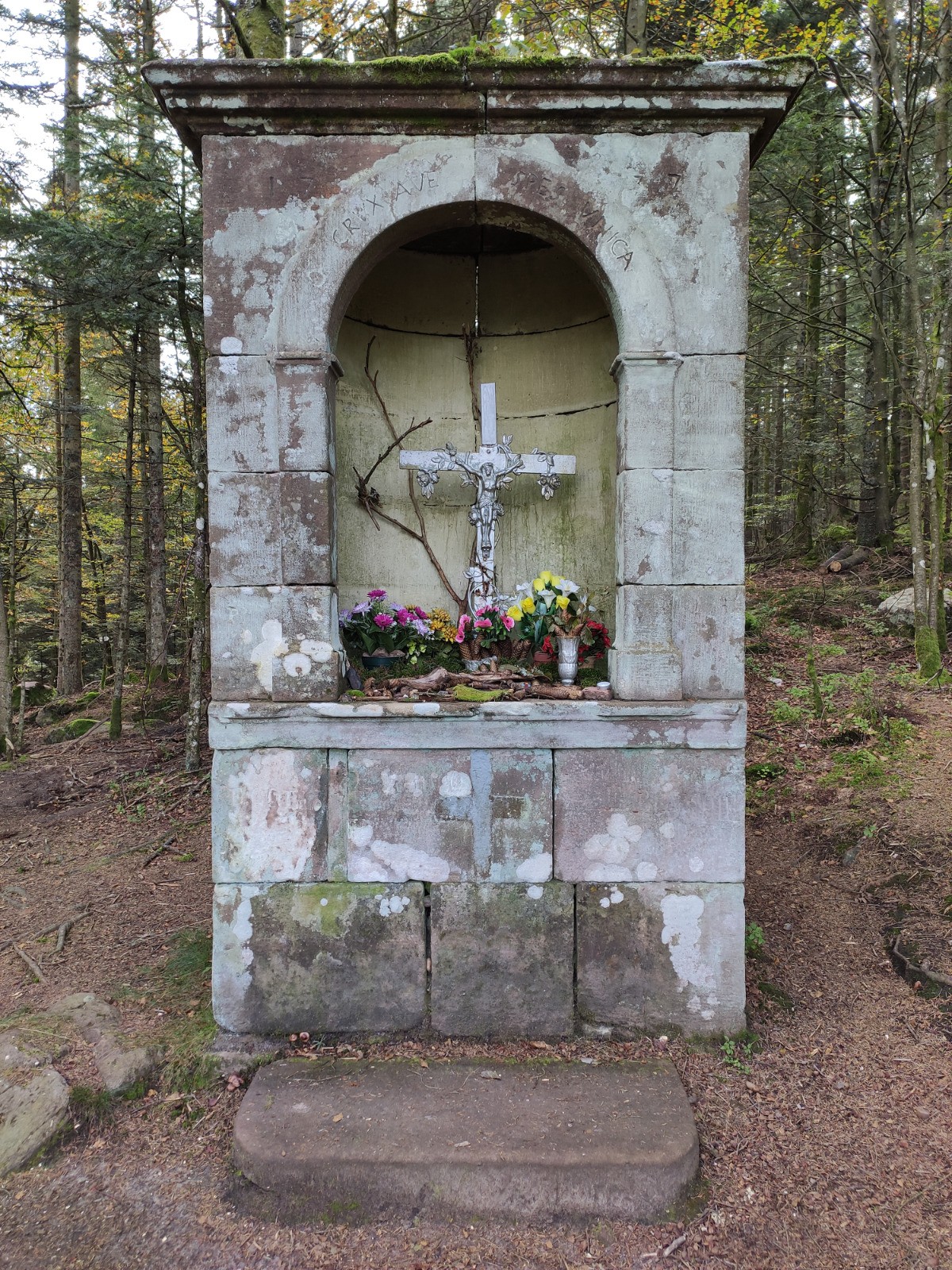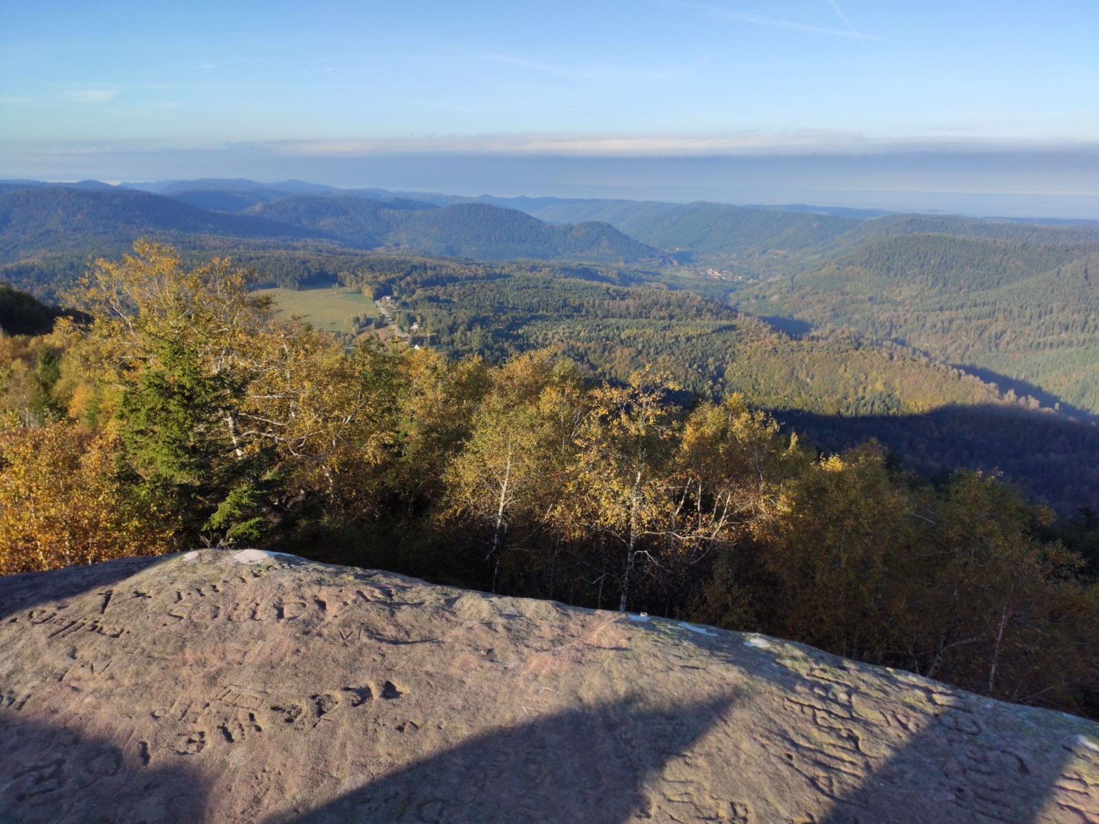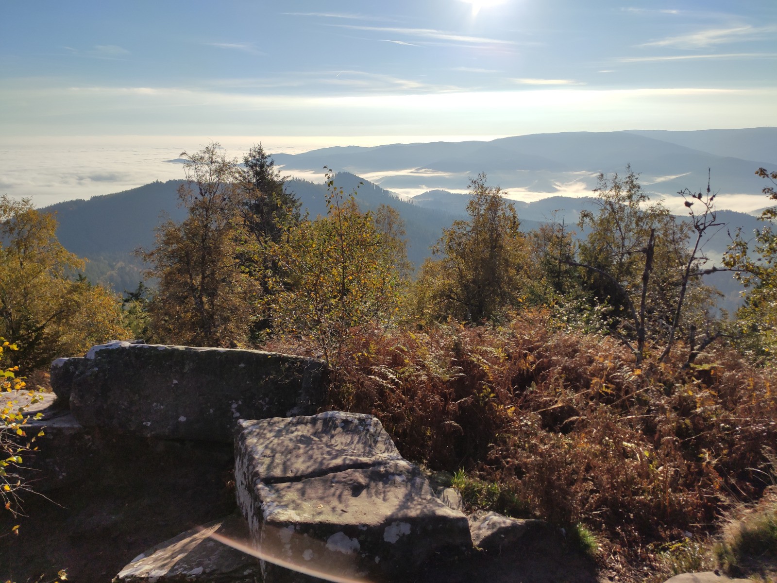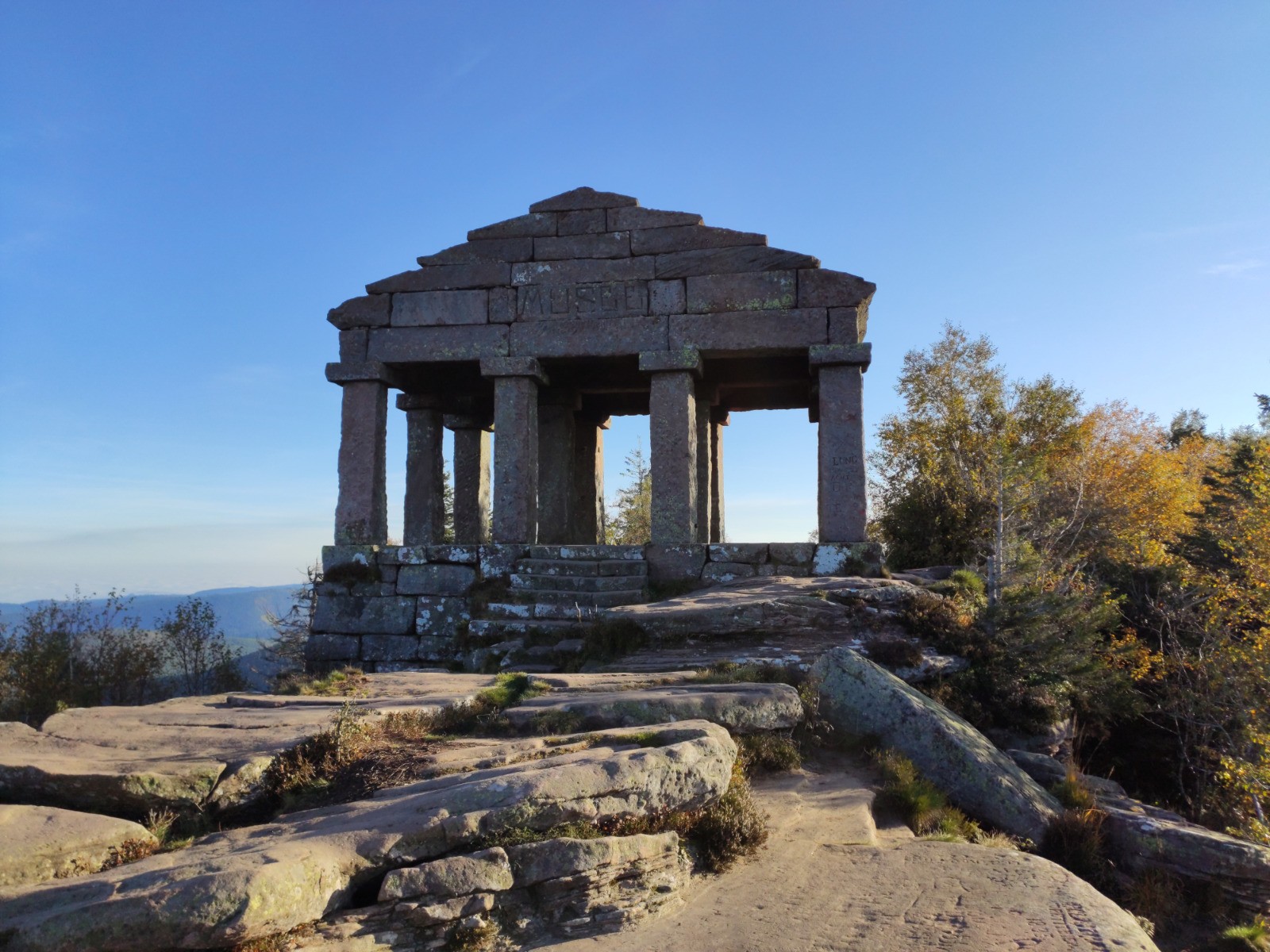 Col du Donon - [GR5] - Donon (1008 m) - Col entre les deux Donons - [GR53] - Baraque Carrée - Col de la Côte de l'Engin - Sentier des Bunkers - Col du Donon - [D392] - Carrefour Étoile 1 - RF de la Croix Brignon - RF des Bannes - Haut du Bon Dieu - Lac de la Maix - RF de la Corbeille - RF de la Croix Brignon - Carrefour Étoile 1 - [D392] - Col du Donon