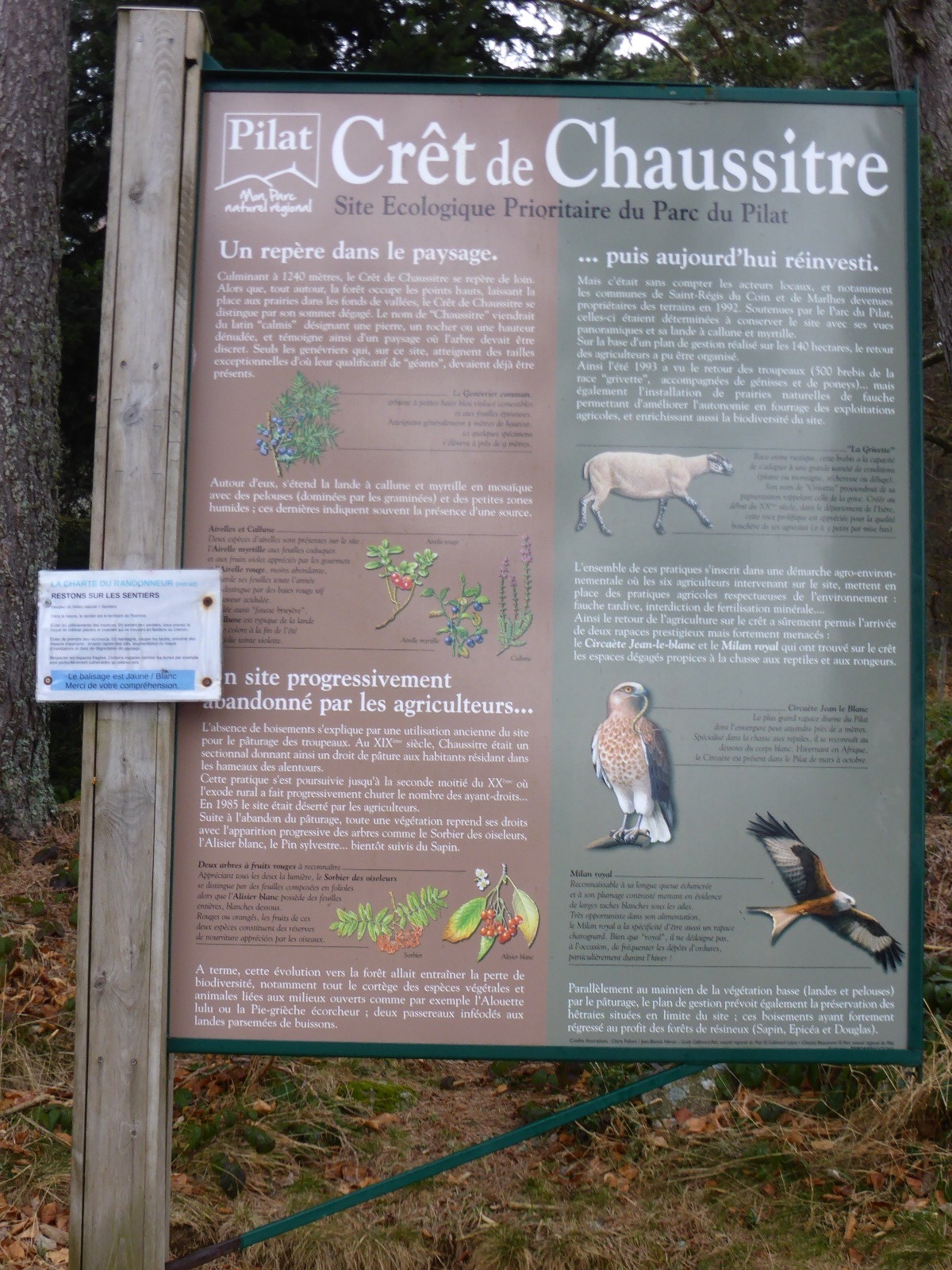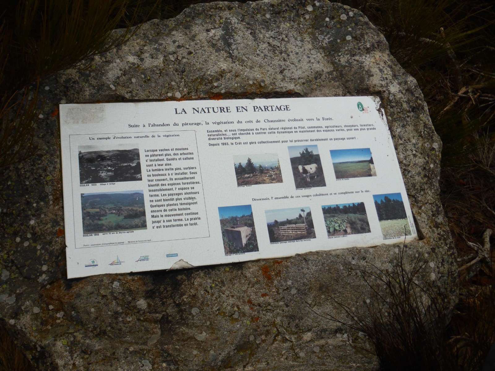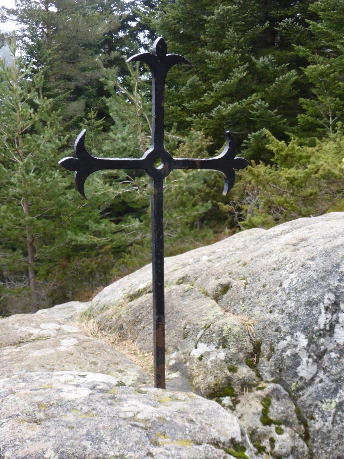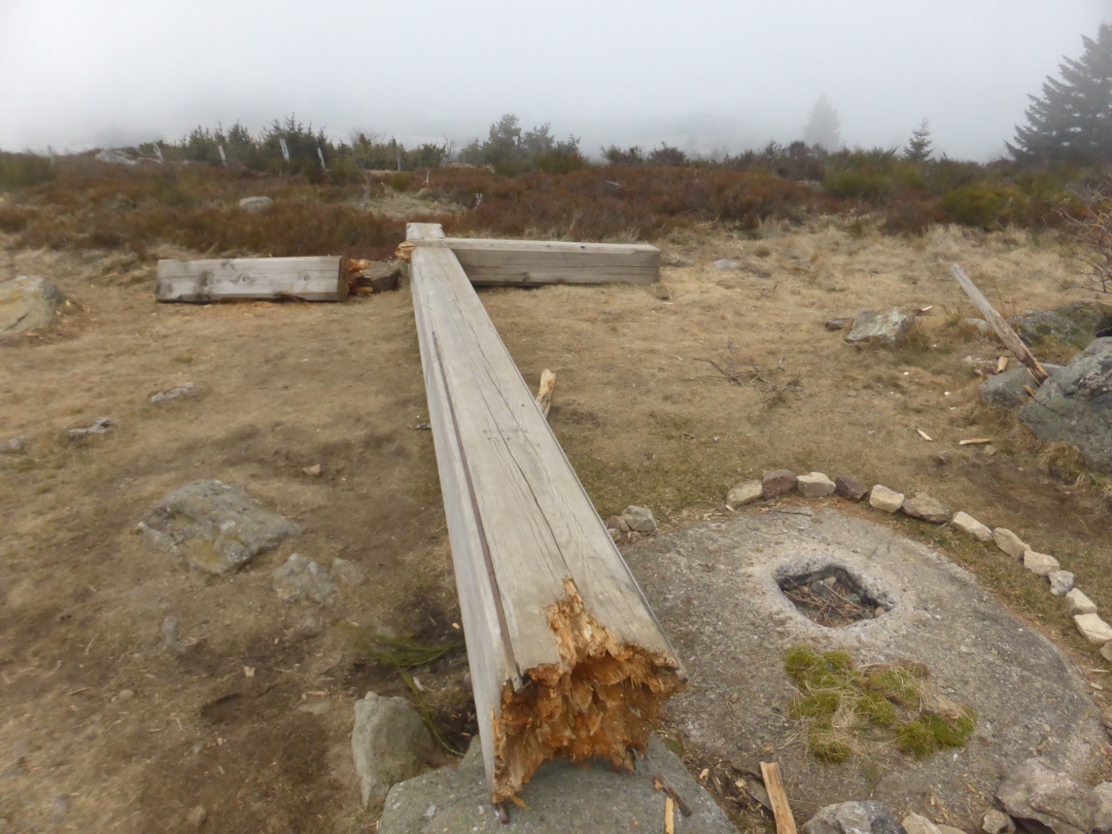 Croix de Chaussitre, malheureusement tombée par le vent, table d'orientation permettant de positionner tout ce qui nous entoure.