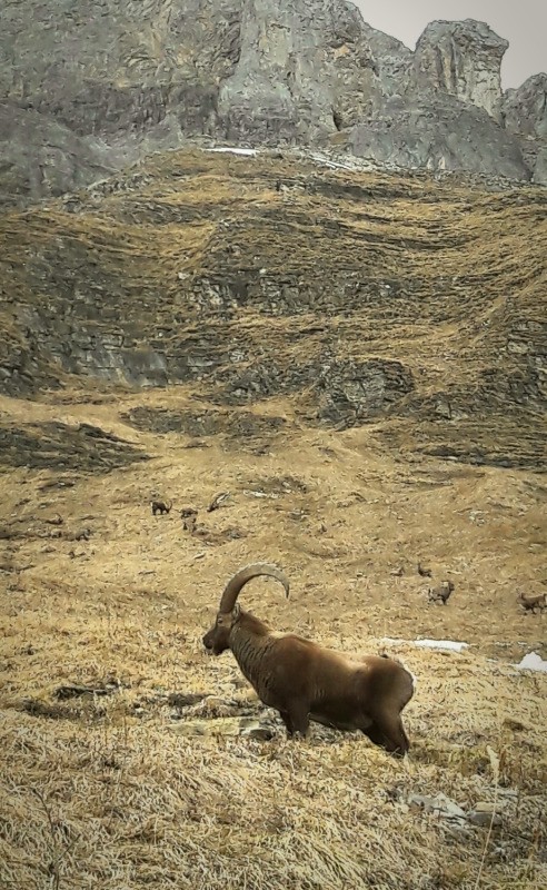 je monte jusqu'au sommet pour voir la sortie. Puis je retourne vers itinéraire normal et là des Bouquetins !