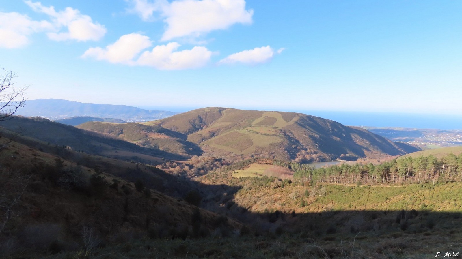 Prendre la piste pompier No.5 dans le fond du parking, la suivre une vingtaine de minutes, 1.5 kilomètre jusqu’au point 314 m. Quitter la piste pour prendre sur la droite un large chemin en herbe montant directement vers le sommet de Mokoa. Du sommet descendre vers le nord puis prendre sur la gauche le deuxième sentier dont l’entrée est un peu masquée par des broussailles. Faire 300 mètres et prendre sur la droite un large chemin en herbe, faire 100 mètres prendre le premier sentier à gauche, faire 300 m et prendre sur la droite, faire 130 m environ et tourner à gauche pour finir de descendre et traverser dès que c’est possible le cours d’eau, Anduretako Erreka. Monter vers le nord-ouest dans le sous-bois clairsemé de façon à rejoindre le col à l’est du sommet d’Oneaga, enclos métallique. Sans perdre d’altitude contourner le sommet par le sud pour monter dès que c’est possible en terrain dégagé. Descendre versant ouest vers le lac et traverser sur le barrage.