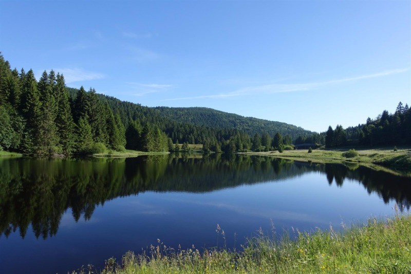Jour 1 : 35 Km, départ des hauts de Saint-Dié (Foucharupt), GR533 jusqu’au col du Plafond, 1 km de grande route jusqu’à Gerbépal et petite route forrestière jusqu’au col de Martimpré. Récupération du GR533. Au saut des Cuves direction Longemer pour monter à Lispach à l’Auberge des « Hauts Viaux » (très bien).