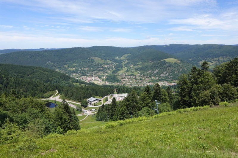 Jour 2 : 35 Km Descente de la très belle vallée de Chajoux, le long de la route. Au dessus de la Bresse récupération du GR533 et redescente sur Cornimont. Puis remontée sur la croix de mission, chemins forestiers pour descendre sur le village du Ventron. Remontée sur le Rian, au dessus du site de Frère Joseph et arrivée au dessus de la vallée de Bussang, vue dégagée. Descente sur Saint-Maurice sur Moselle pour remonter à la chambre d’hôte « François Mathieu » (très bien). Dans l’ensemble beau parcours avec beaucoup de vues dégagées.