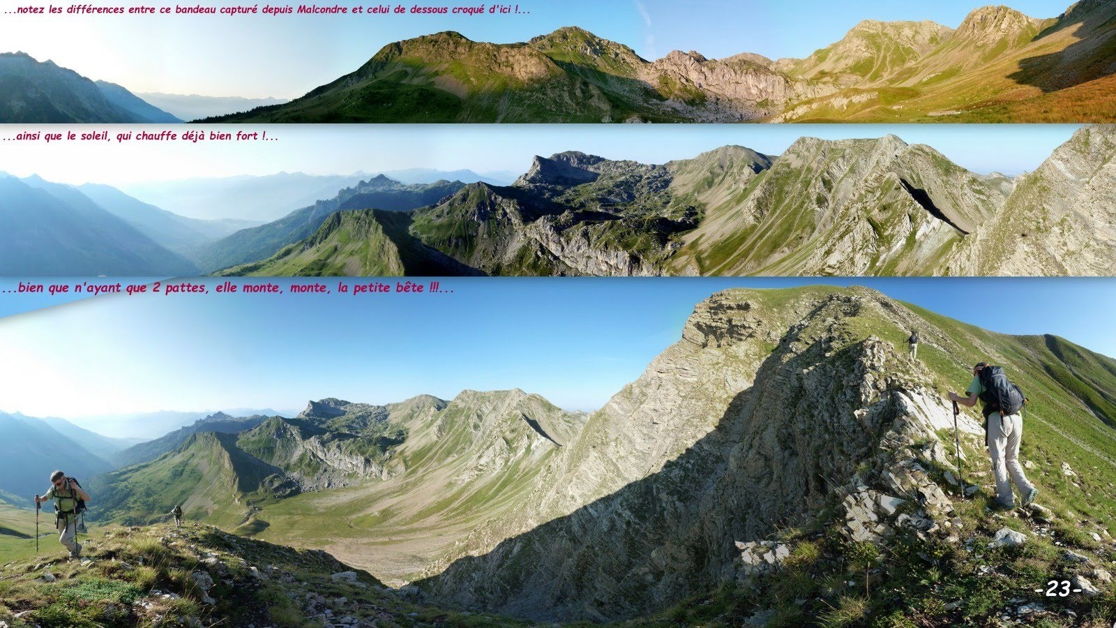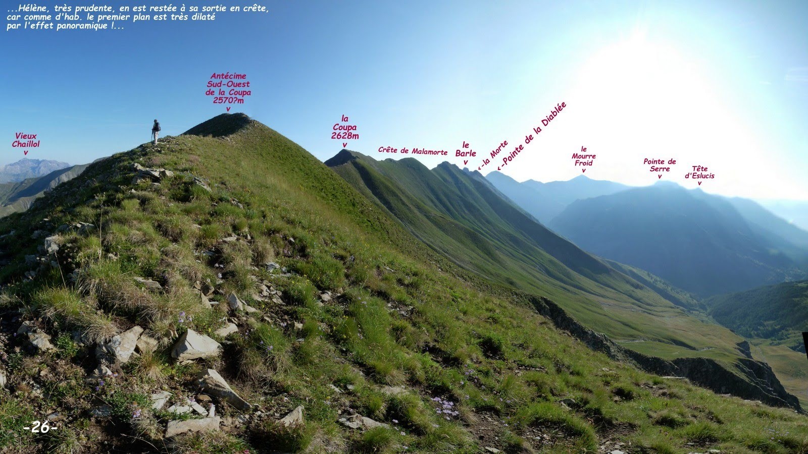 ou bien éviter la descente scabreuse de la cote 2402 m (exclusivement pour les photos de l'aiguille rocheuse !) en suivant la variante d'Hélène.
